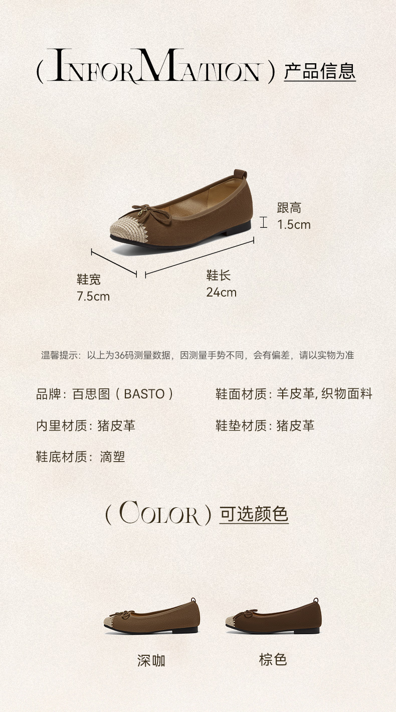 BASTO(百思图),品牌拥有17年历史,秉承优雅、甜美、清新的设计理念,主张“好嫁风”的产品风格,将甜美俏丽的少女情怀融合优雅气质的时尚品味,塑造出唯美优雅、受欢迎的女鞋款式。主打以女性温柔与亲和力为特色的流行时尚产品,糅合雅致又富有亲和力的裸粉色调,淑媛端庄、清新甜美。目前品牌已开设线下门店达1400多家。