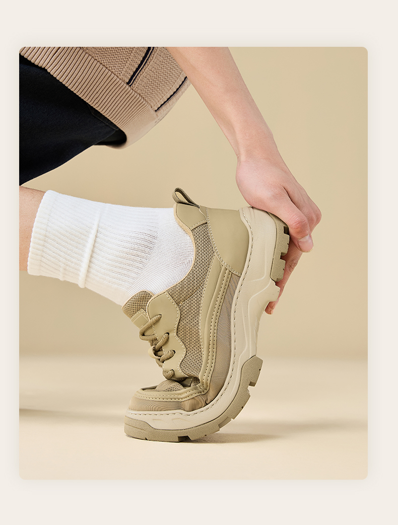 | 风格:运动 | 色系:杏色 | 跟高数值:4CM | 40码鞋宽参考(男):11.5CM | 性别:男子 |
