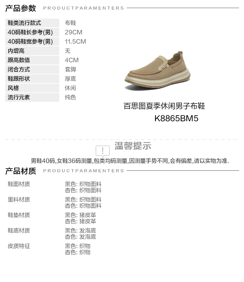 | 风格:休闲 | 色系:杏色 | 跟高数值:4CM | 40码鞋宽参考(男):11.5CM | 性别:男子 |