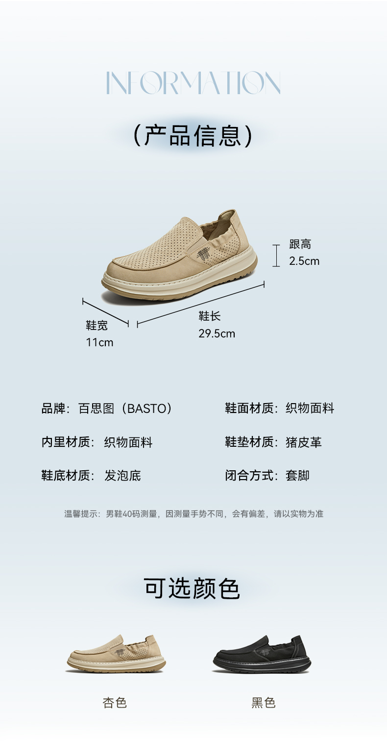 | 40码鞋长参考(男):29.5CM | 鞋帮:低帮 | 鞋头款式:圆头 | 鞋底材质:发泡底 | 鞋面图案:纯色 |