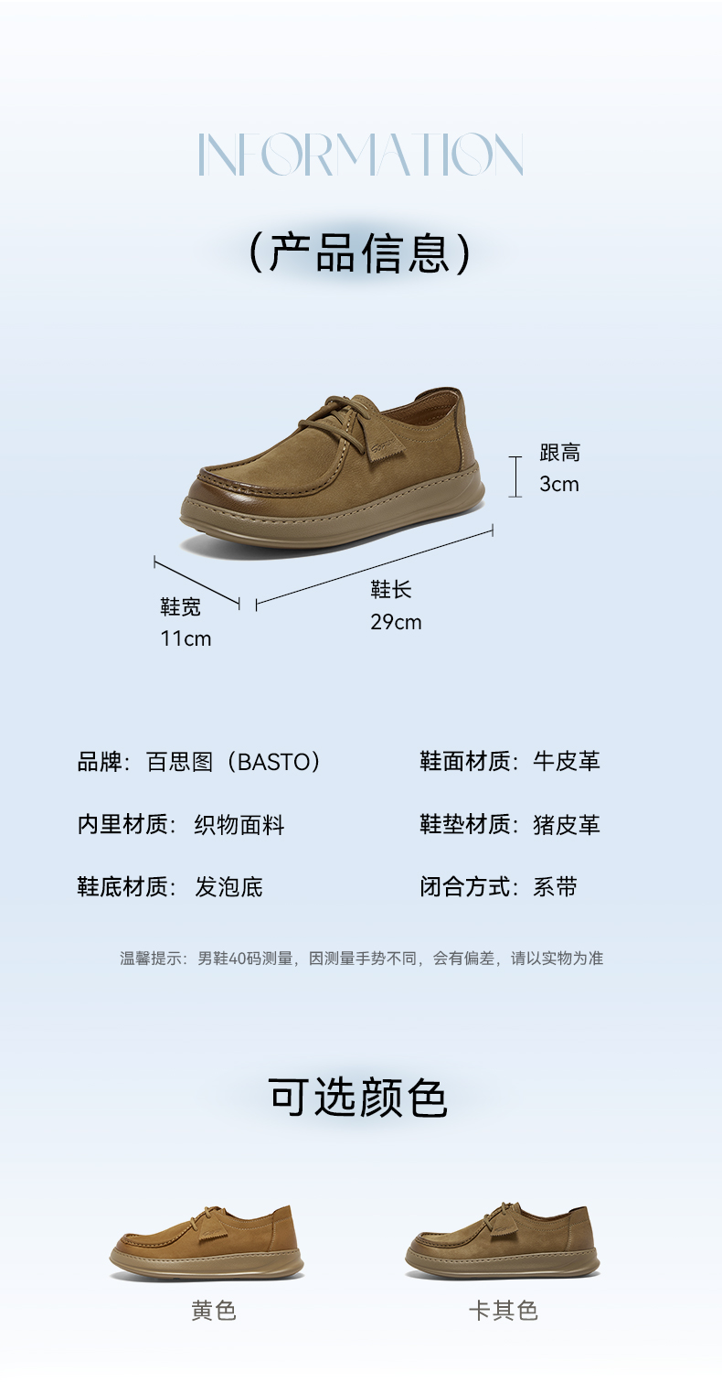 | 风格:运动 | 色系:卡其 | 跟高数值:3CM | 40码鞋宽参考(男):11CM | 性别:男子 |