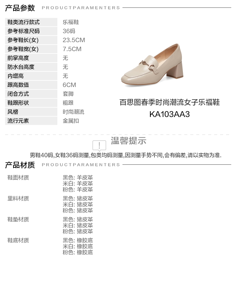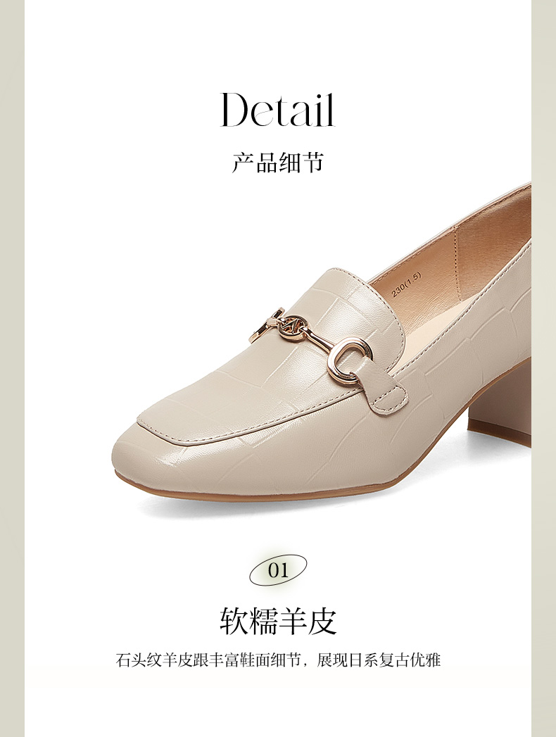 | 配跟:无 | 上市时间:2023年春季 | 鞋类流行款式:乐福鞋 | 鞋头款式:方圆头 | 鞋面图案:纯色 |