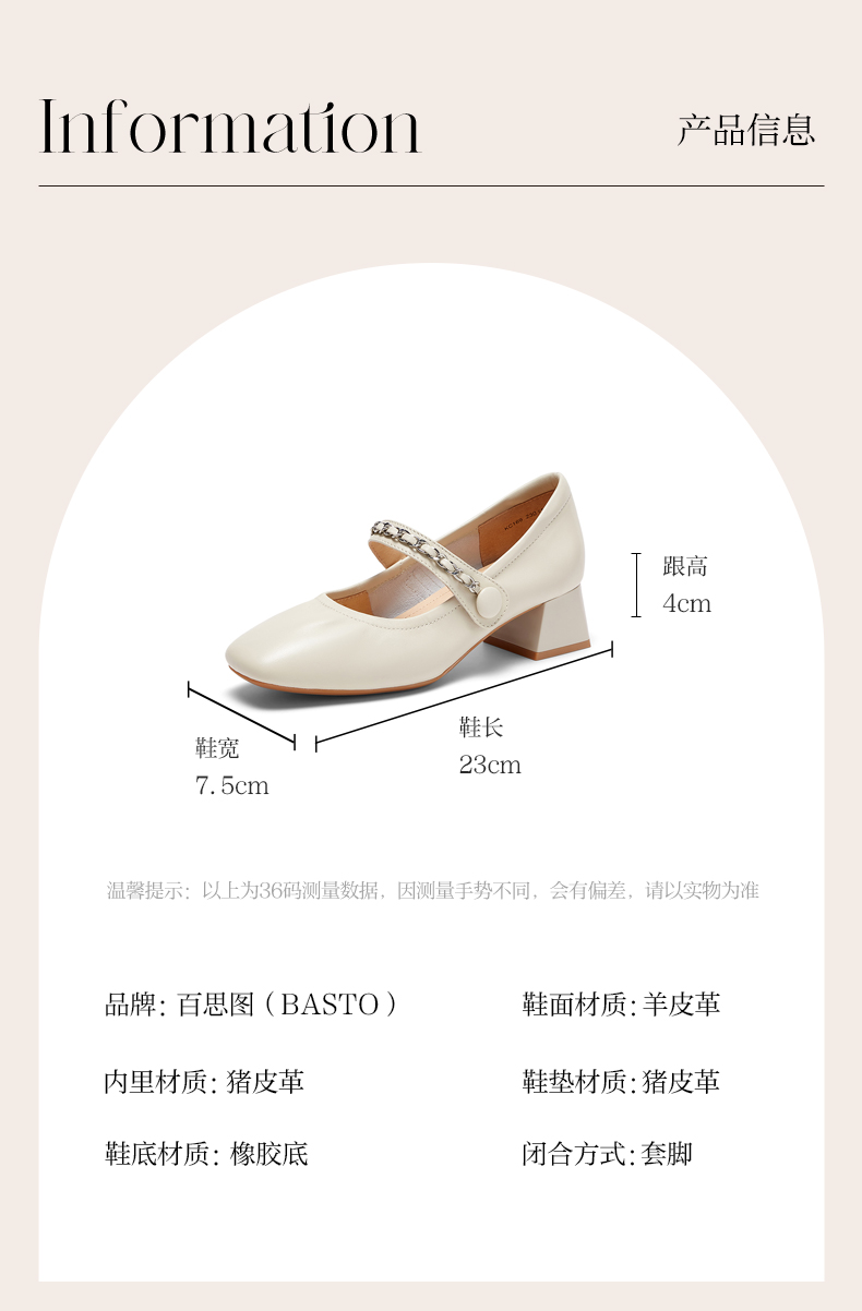 | 鞋头款式:方头 | 鞋底材质:橡胶底 | 鞋面图案:纯色 | 内增高:无 | 鞋跟形状:粗跟 |