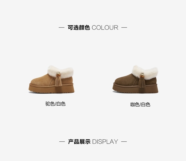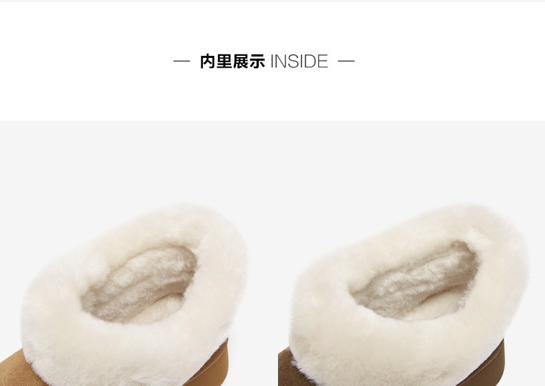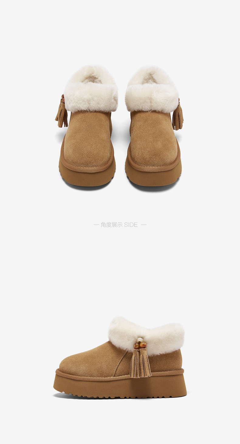 | 帮面材质:羊毛皮牛剖层革 | 配跟:无 | 靴筒口围:34CM | 上市时间:2025年冬季 | 鞋类流行款式:雪地靴 |