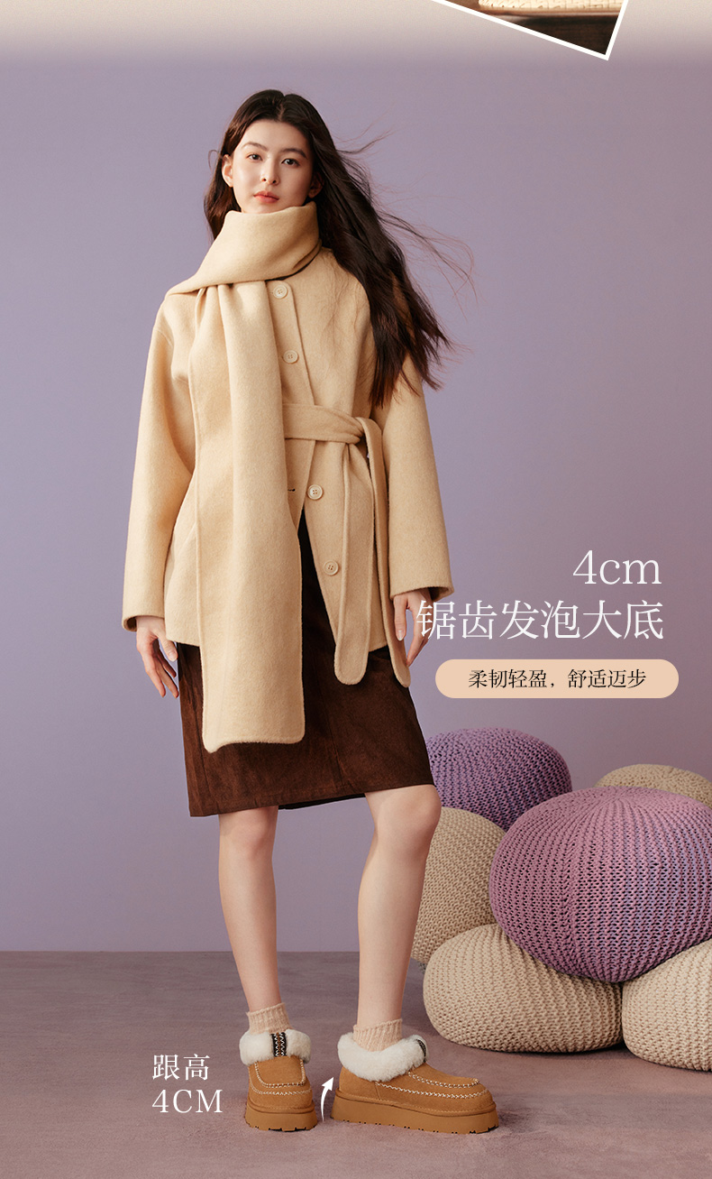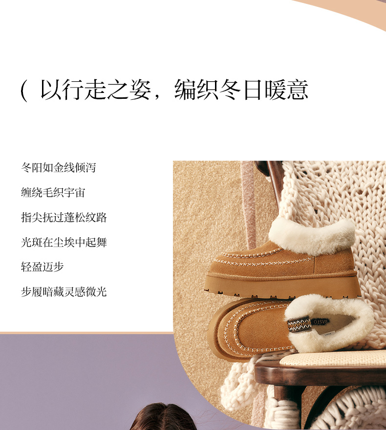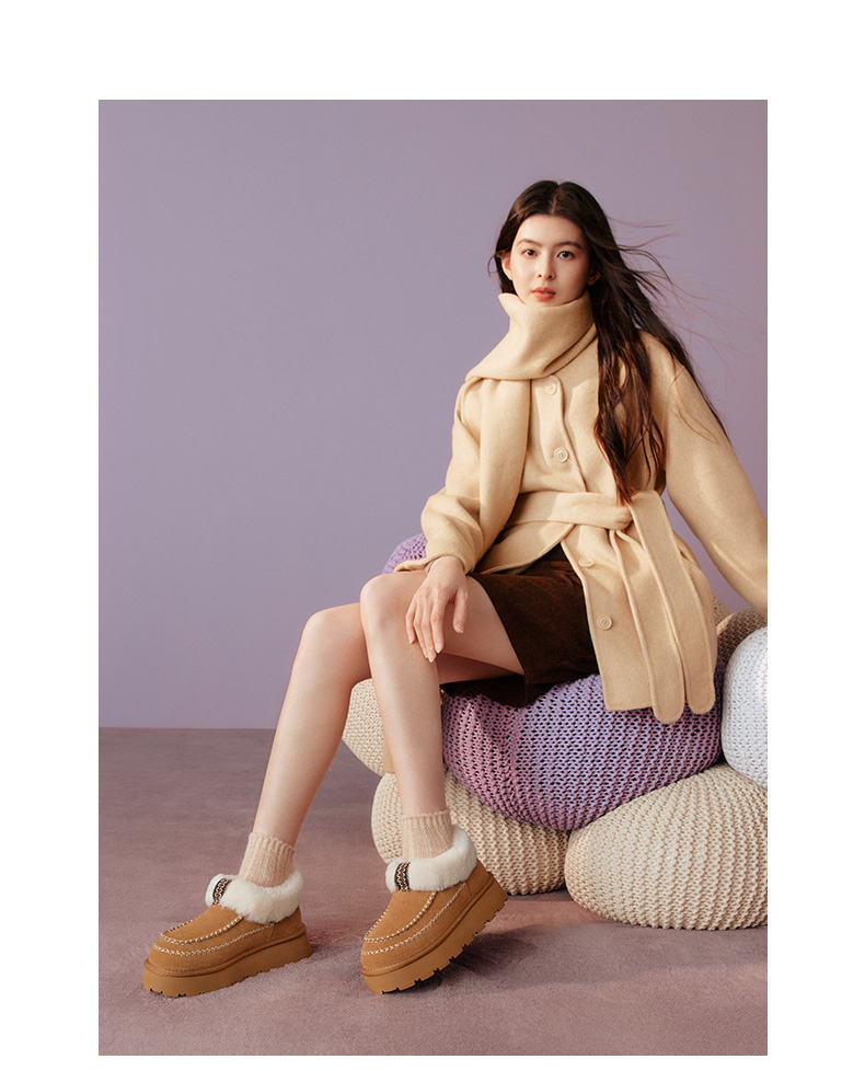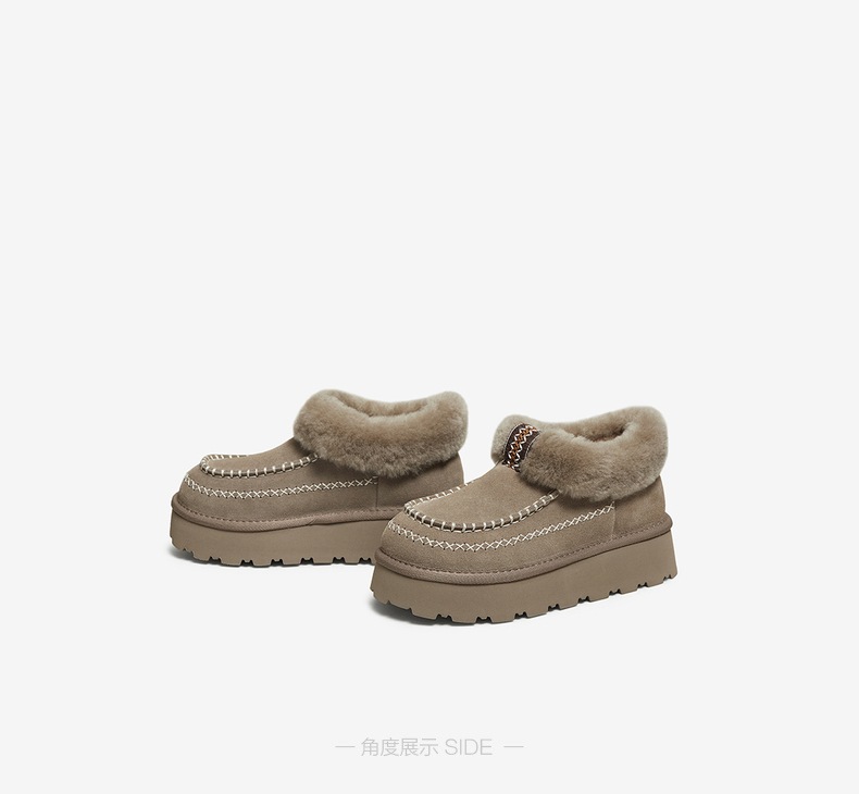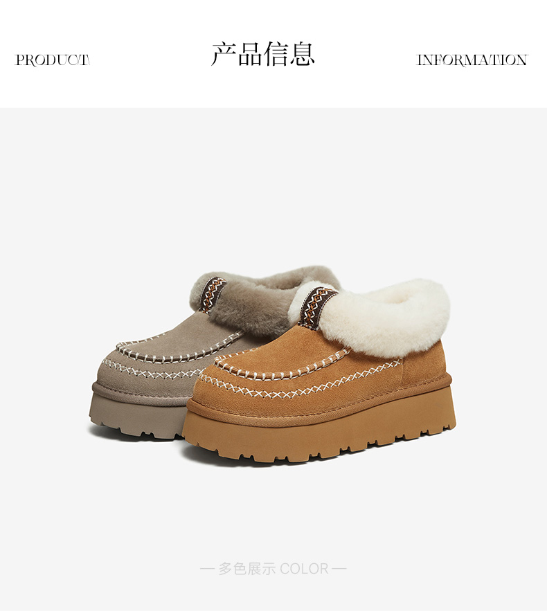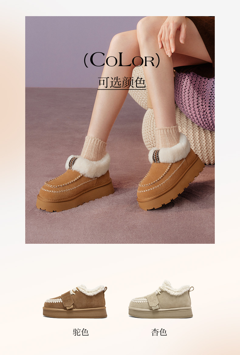 | 帮面材质:牛剖层革 | 配跟:无 | 靴筒口围:37CM | 上市时间:2025年冬季 | 鞋类流行款式:雪地靴 |