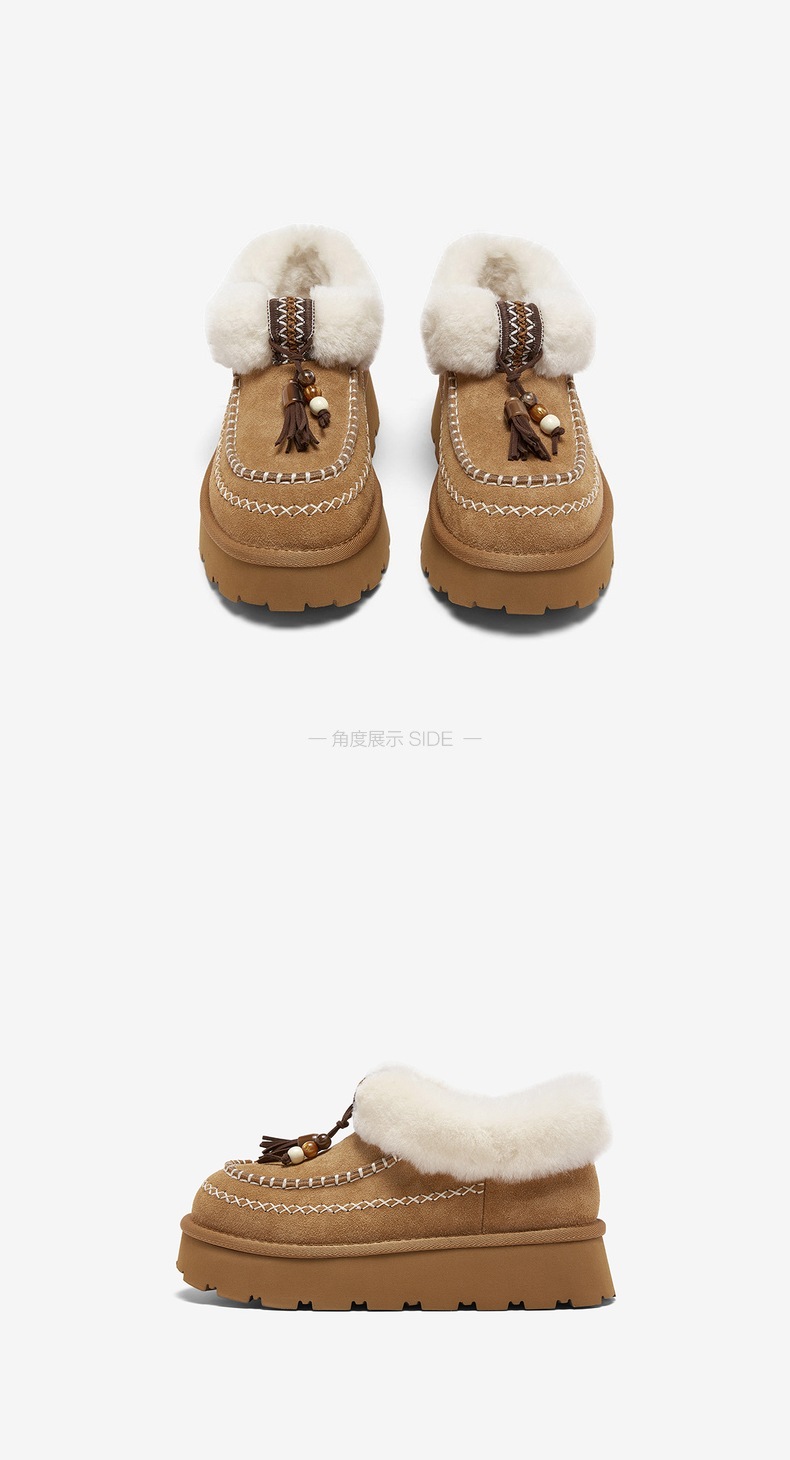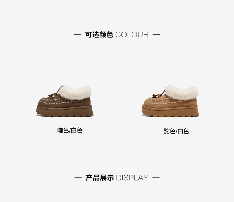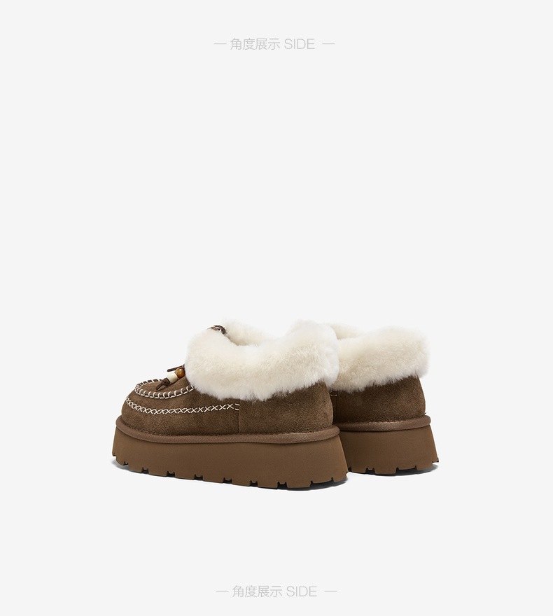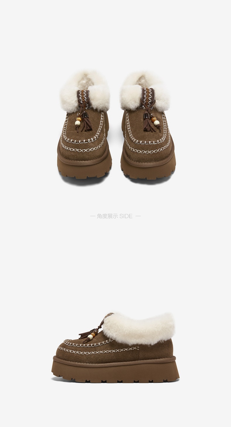 | 帮面材质:羊毛皮牛剖层革 | 配跟:无 | 靴筒口围:34CM | 上市时间:2025年冬季 | 鞋类流行款式:雪地靴 |