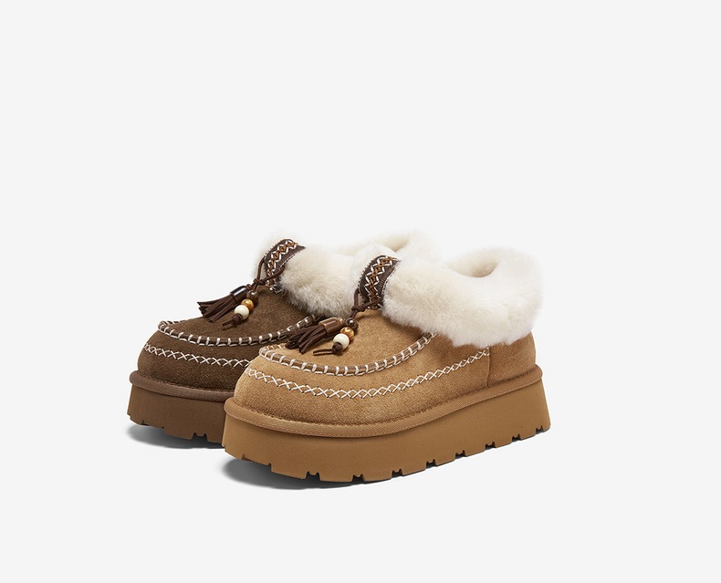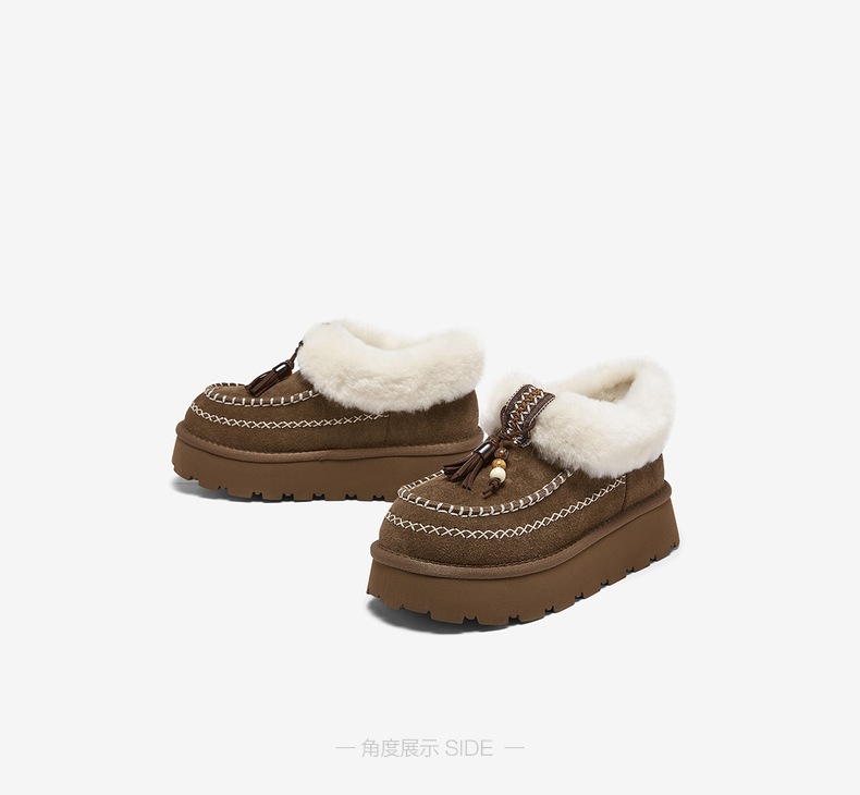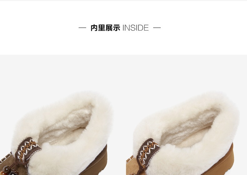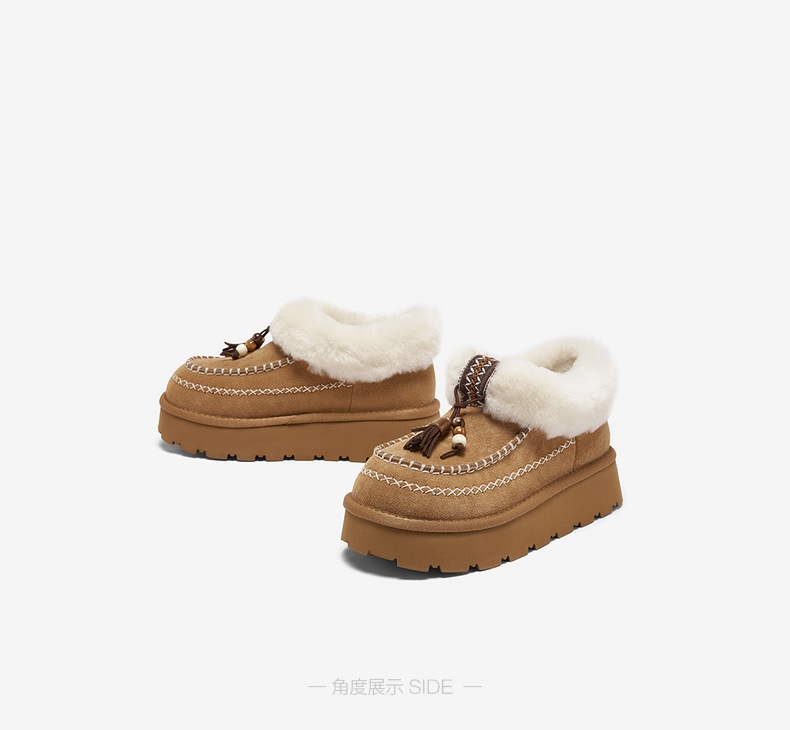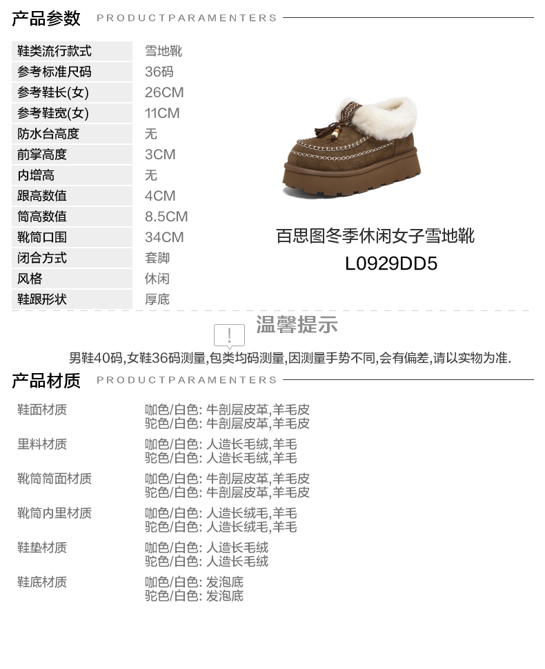 | 帮面材质:羊毛皮牛剖层革 | 配跟:无 | 靴筒口围:34CM | 上市时间:2025年冬季 | 鞋类流行款式:雪地靴 |