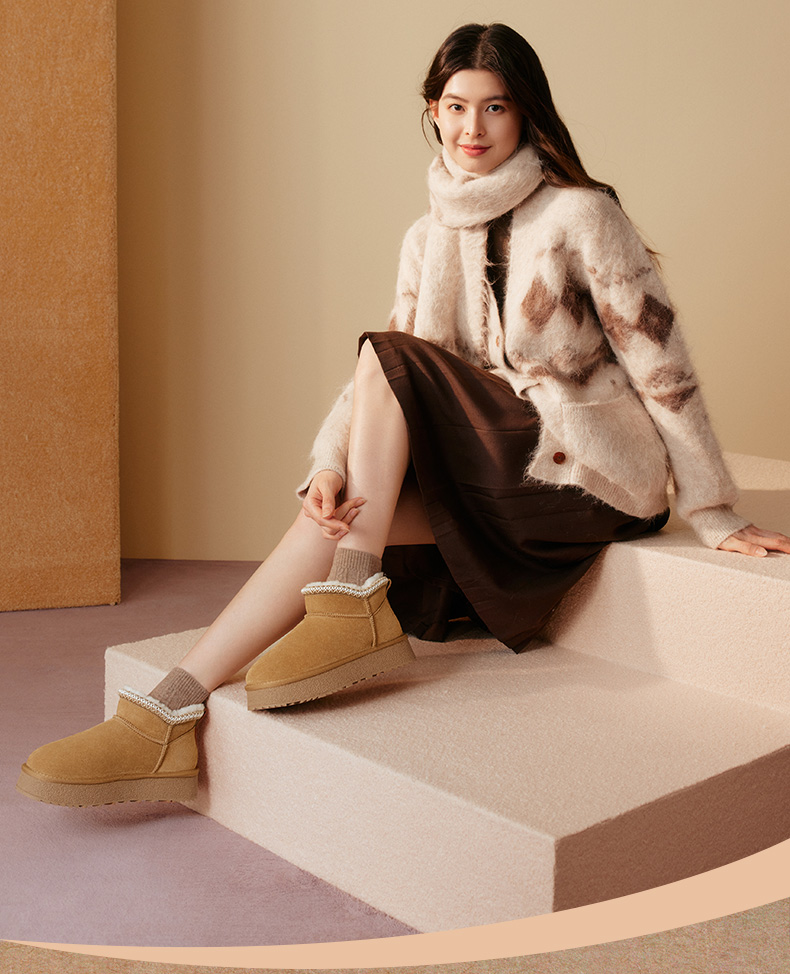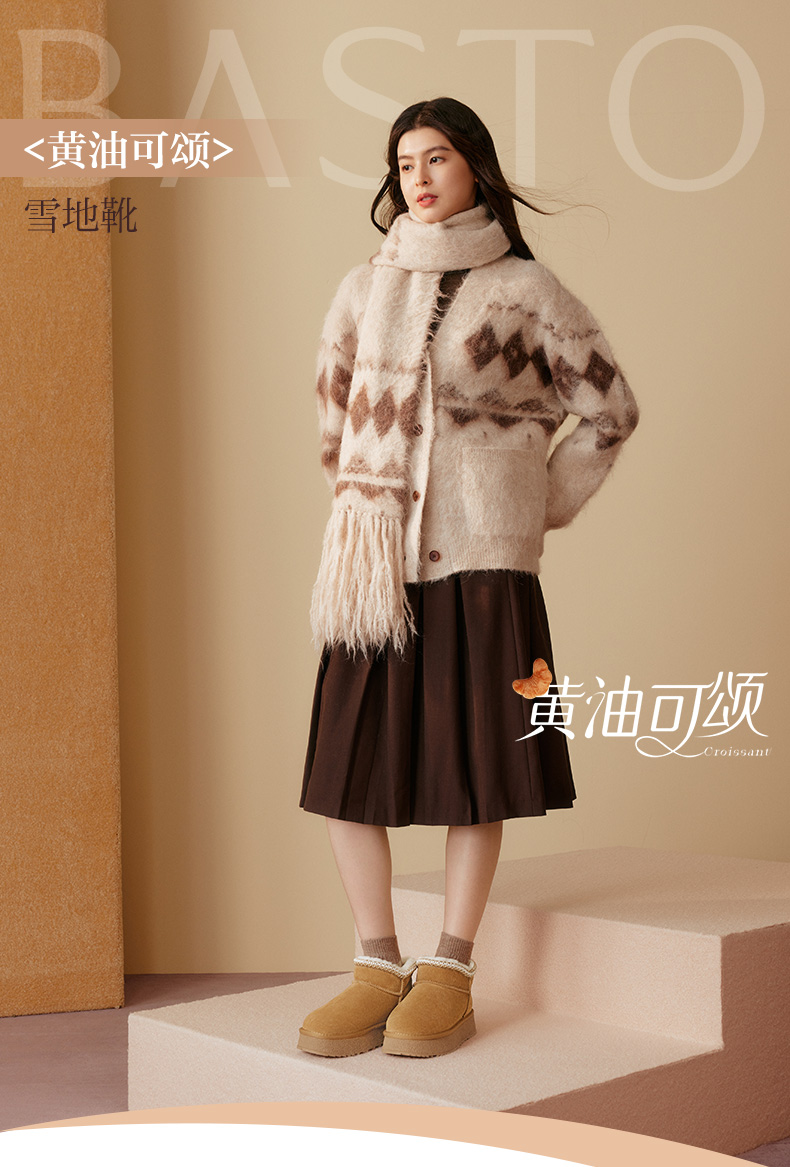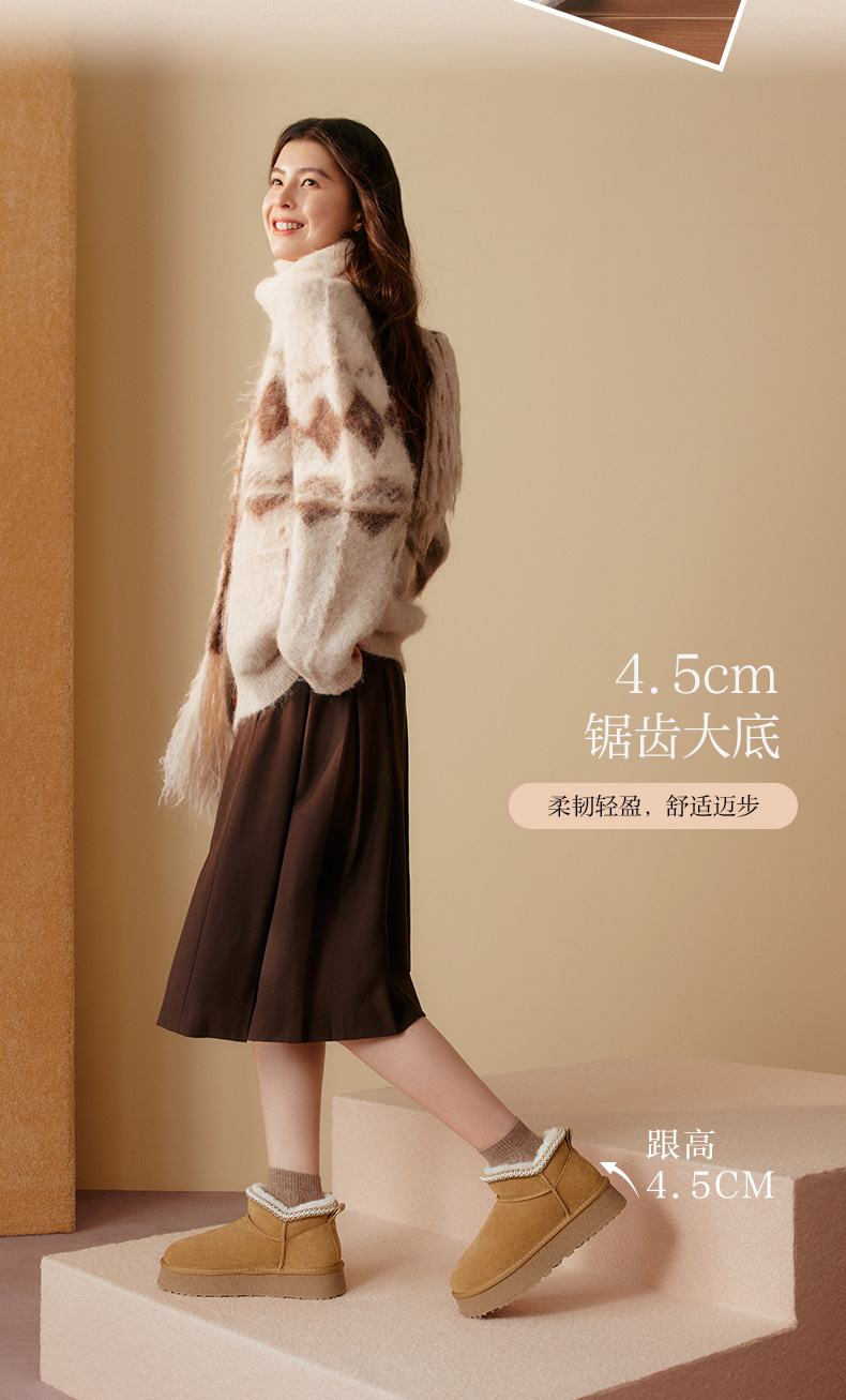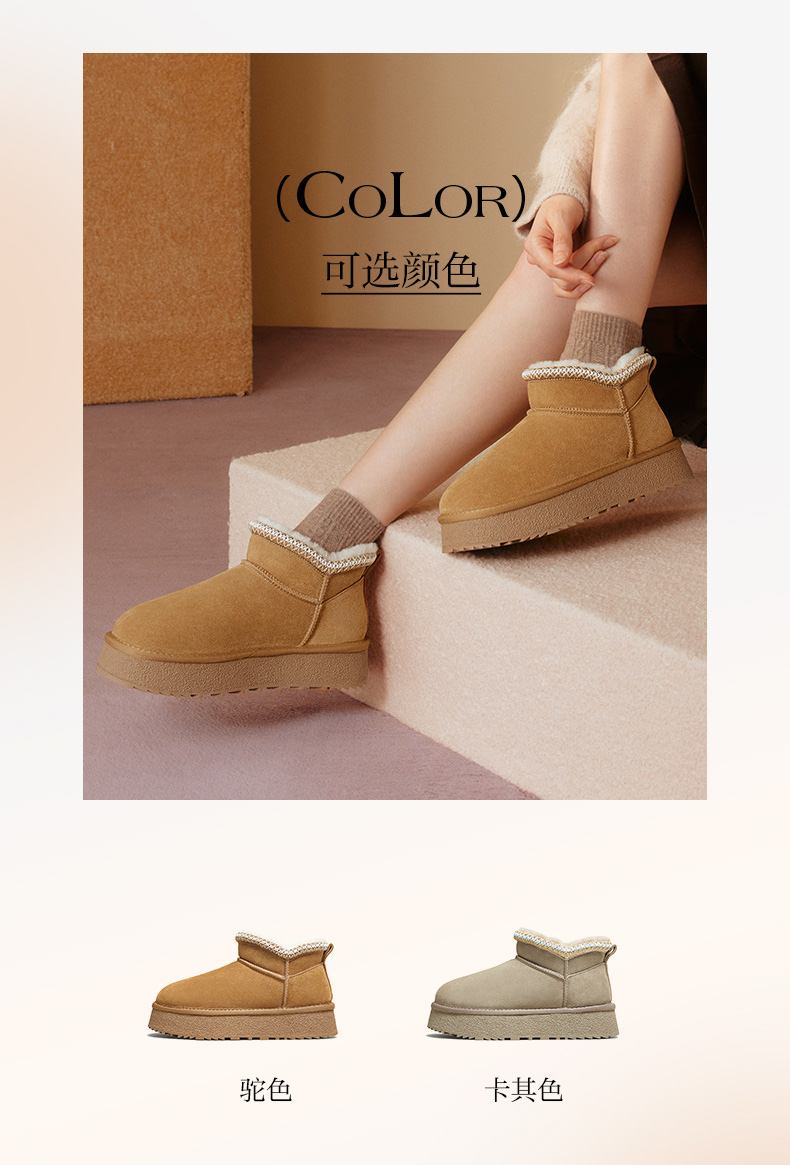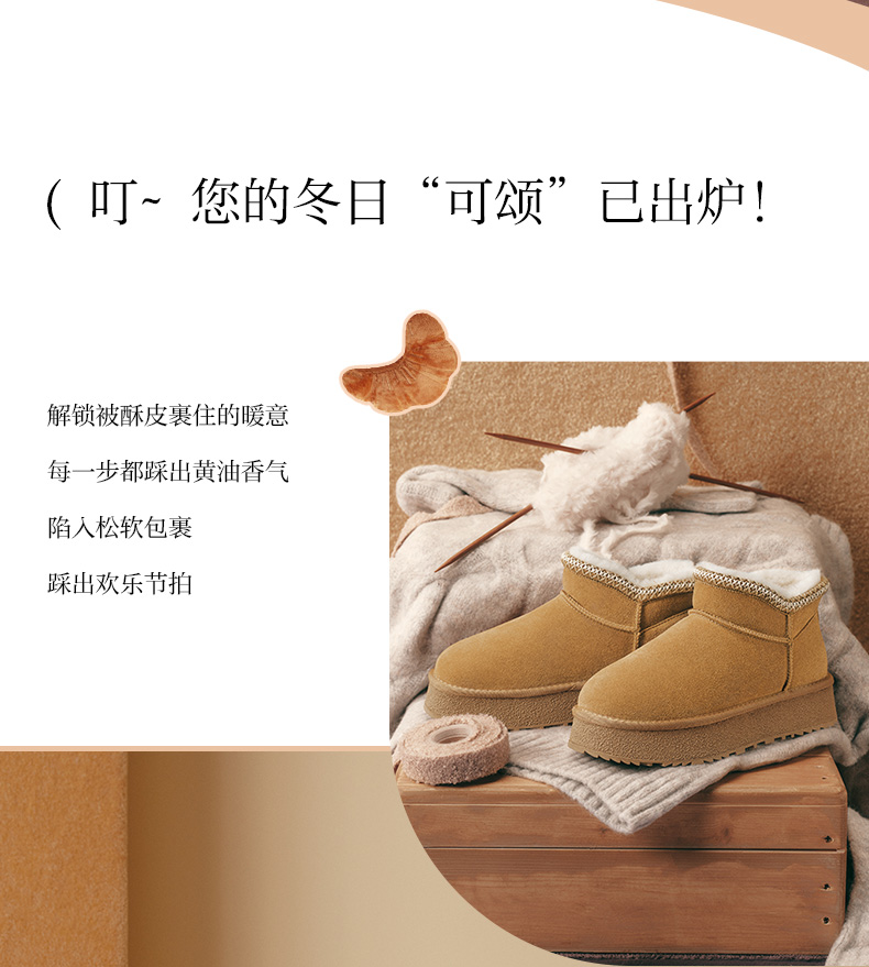 | 帮面材质:牛剖层革 | 配跟:无 | 靴筒口围:34.5CM | 上市时间:2025年冬季 | 鞋类流行款式:雪地靴 |