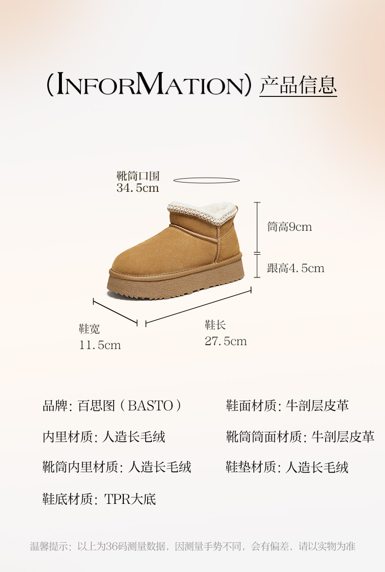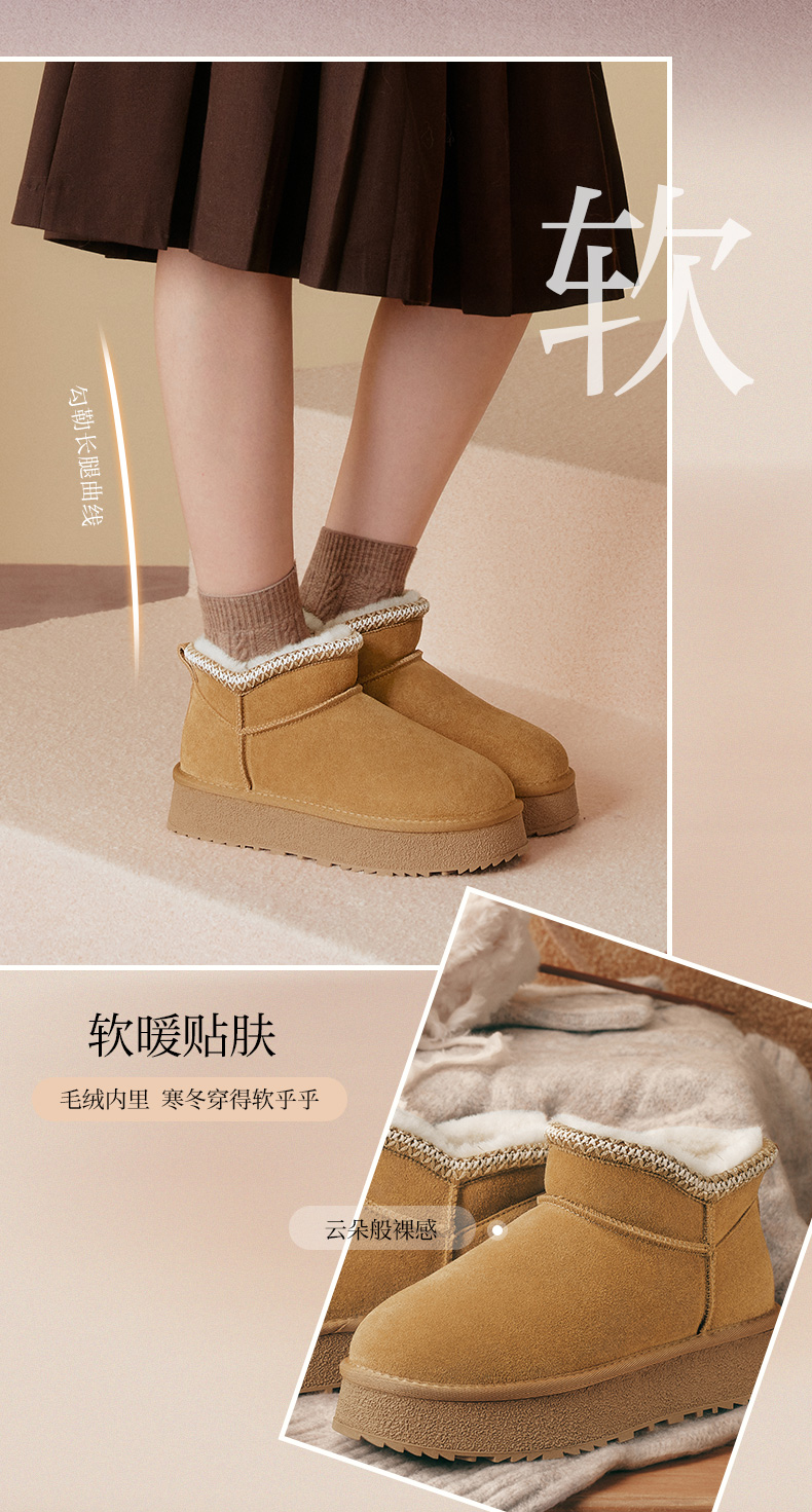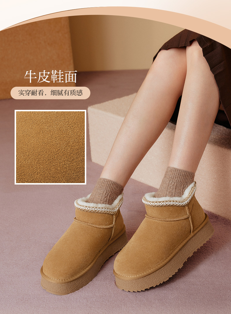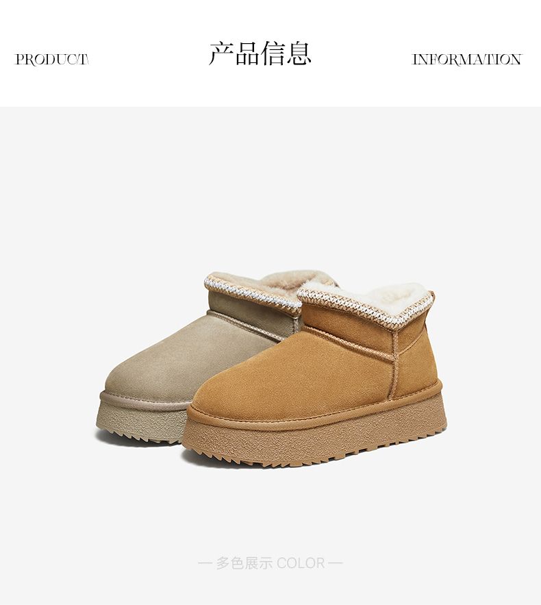 | 帮面材质:牛剖层革 | 配跟:无 | 靴筒口围:34.5CM | 上市时间:2025年冬季 | 鞋类流行款式:雪地靴 |
