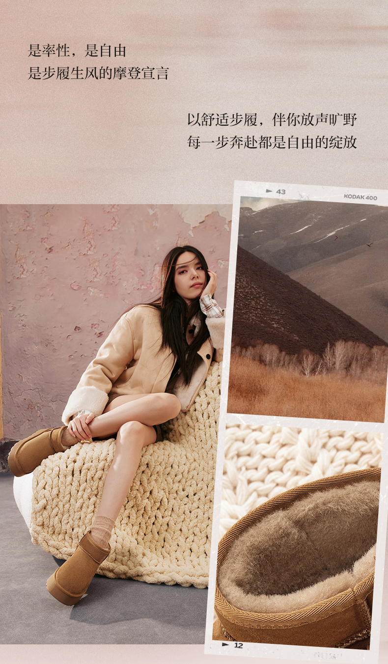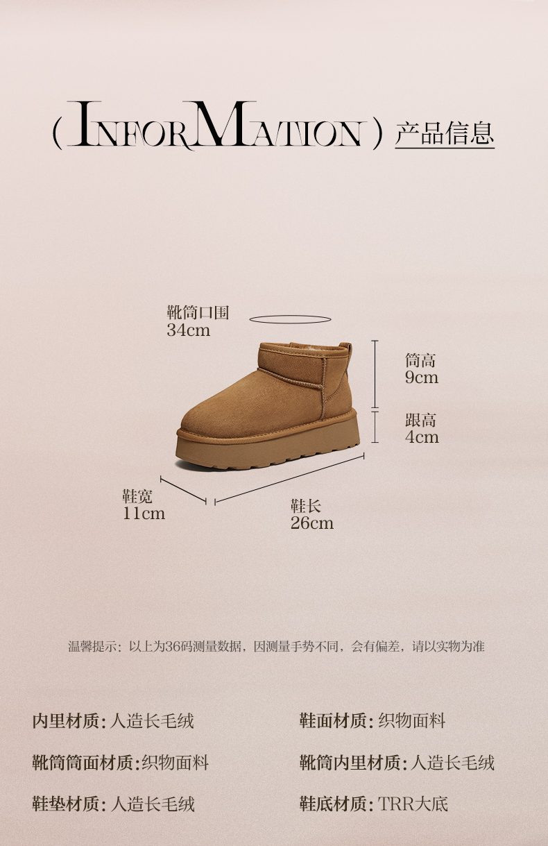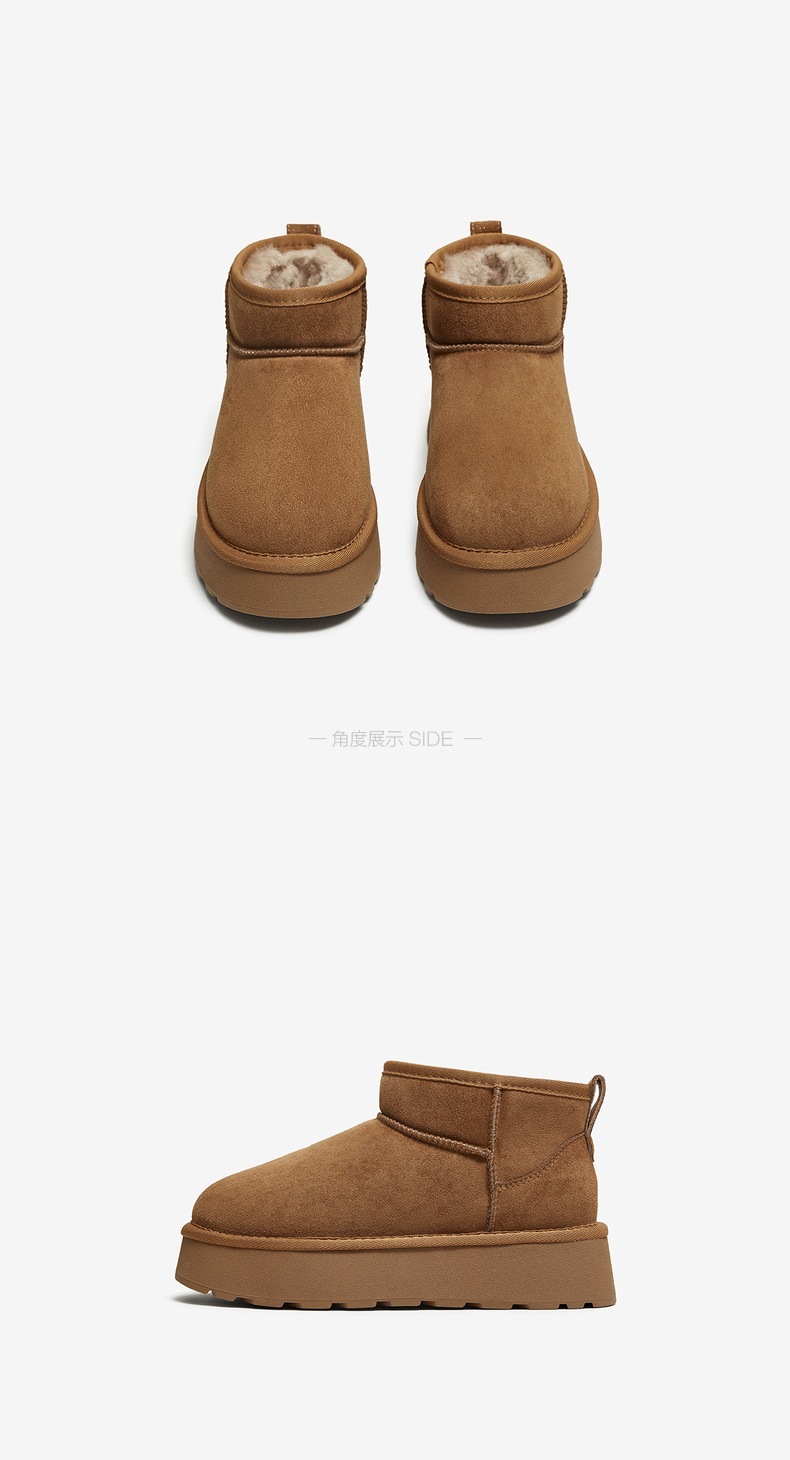 | 帮面材质:牛剖层革 | 配跟:无 | 靴筒口围:34CM | 上市时间:2025年冬季 | 鞋类流行款式:雪地靴 |