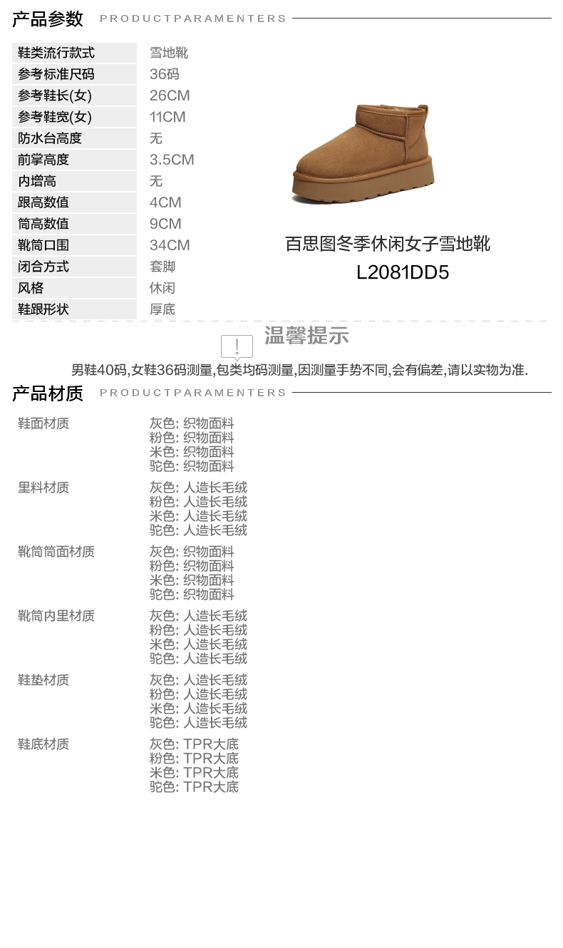 | 款式季节:冬季 | 前掌高度:3.5CM | 皮质特征:无 | 防水台高度:无 |