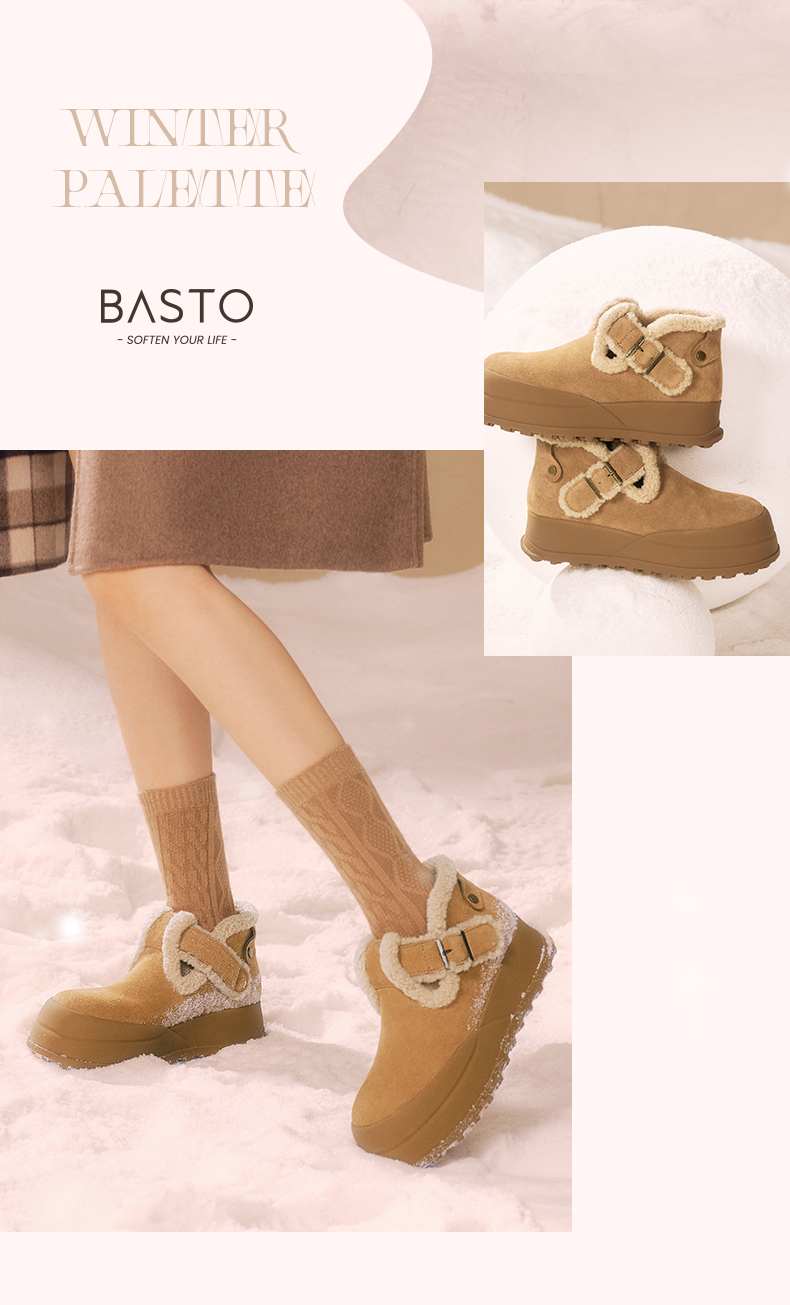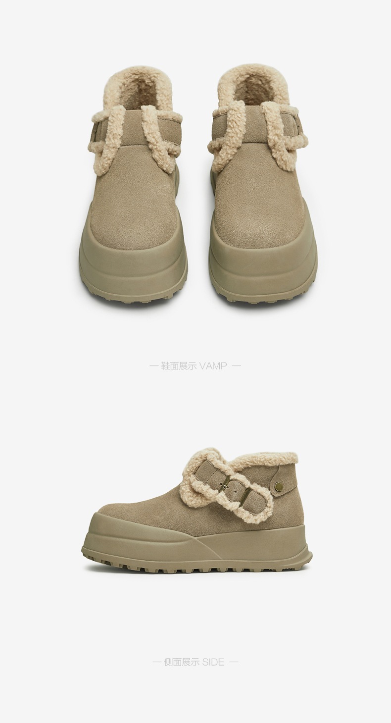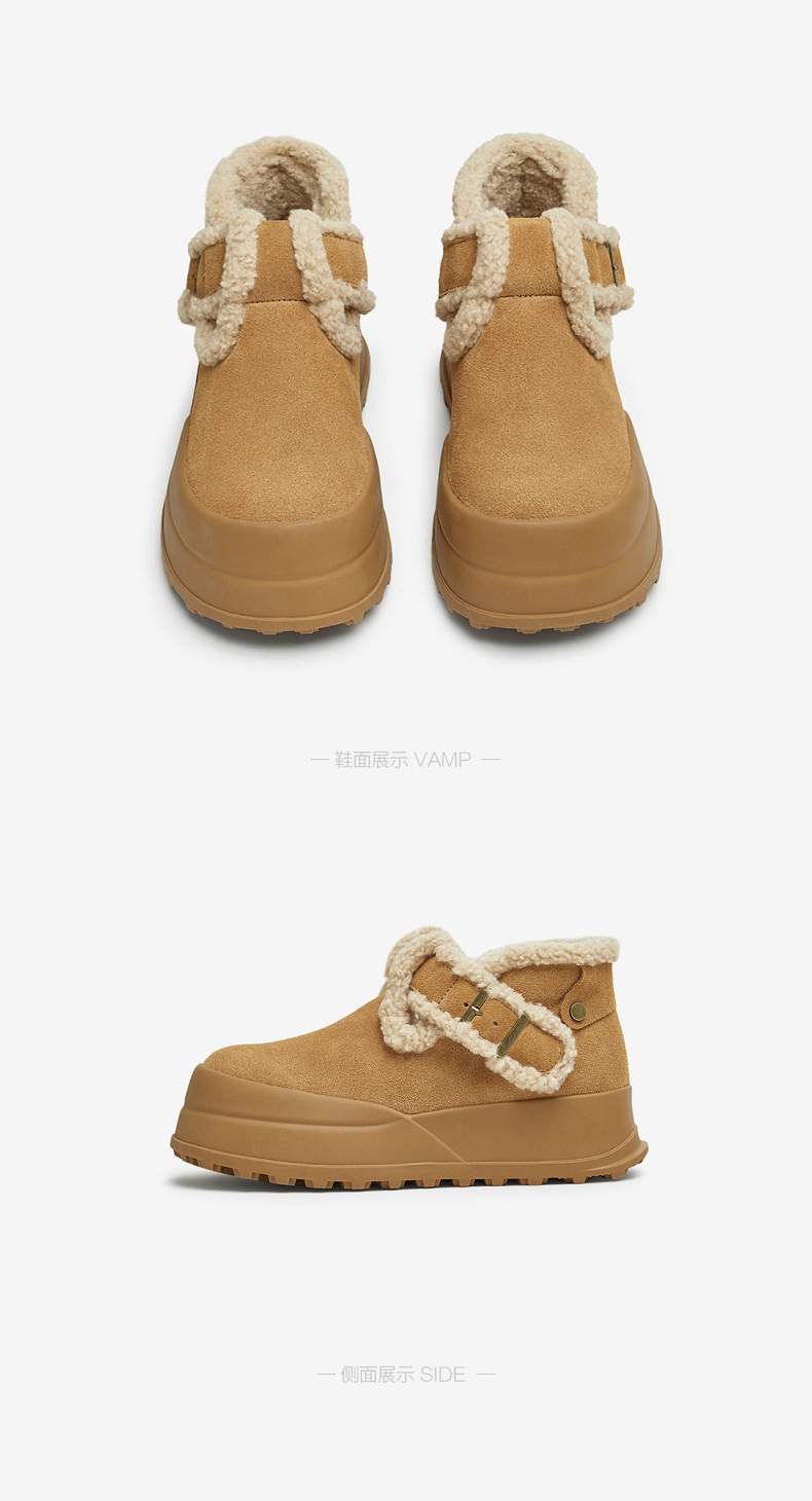 | 鞋底材质:橡胶底 | 靴筒内里材质:人造长毛绒 | 内增高:无 | 鞋面材质:牛剖层皮革 | 闭合方式:搭扣 |