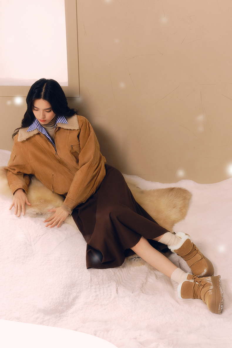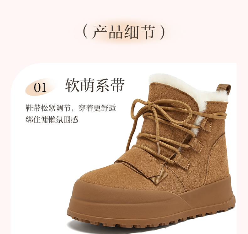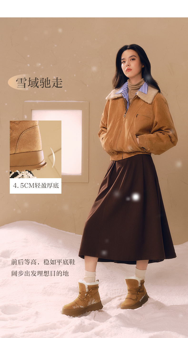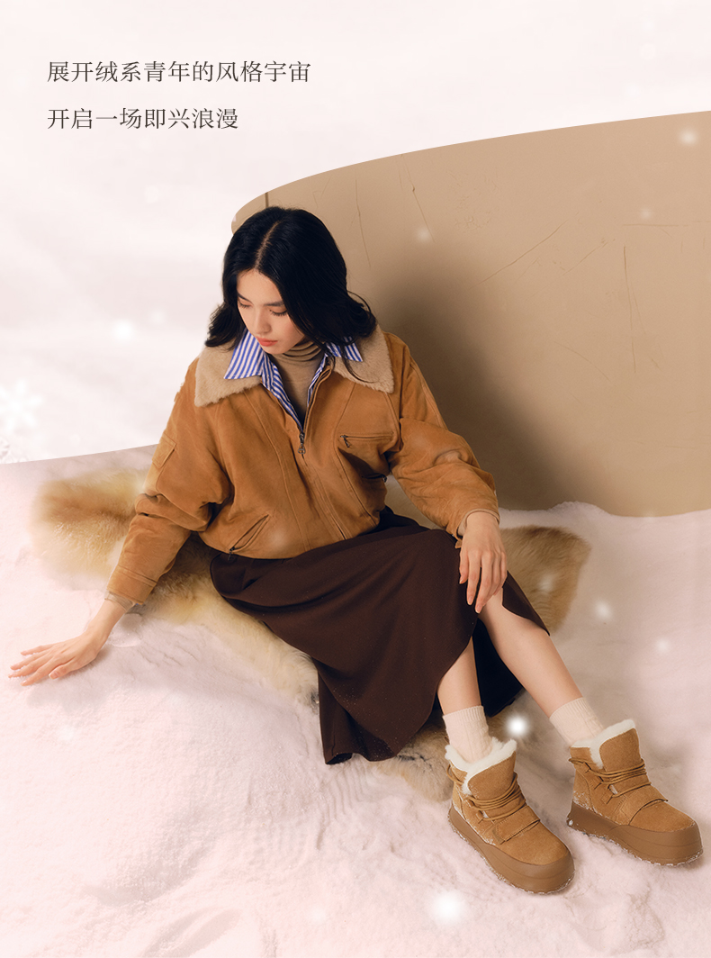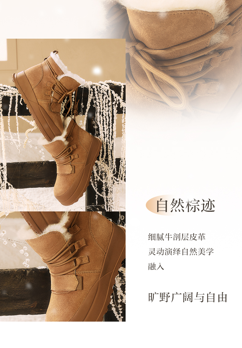 | 帮面材质:牛剖层革 | 配跟:无 | 靴筒口围:33CM | 上市时间:2024年冬季 | 鞋类流行款式:雪地靴 |
