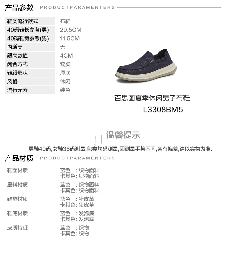 | 跟高数值:4CM | 性别:男子 | 里料材质:织物面料 | 内里:纺织品 | 制鞋工艺:车线胶粘 |