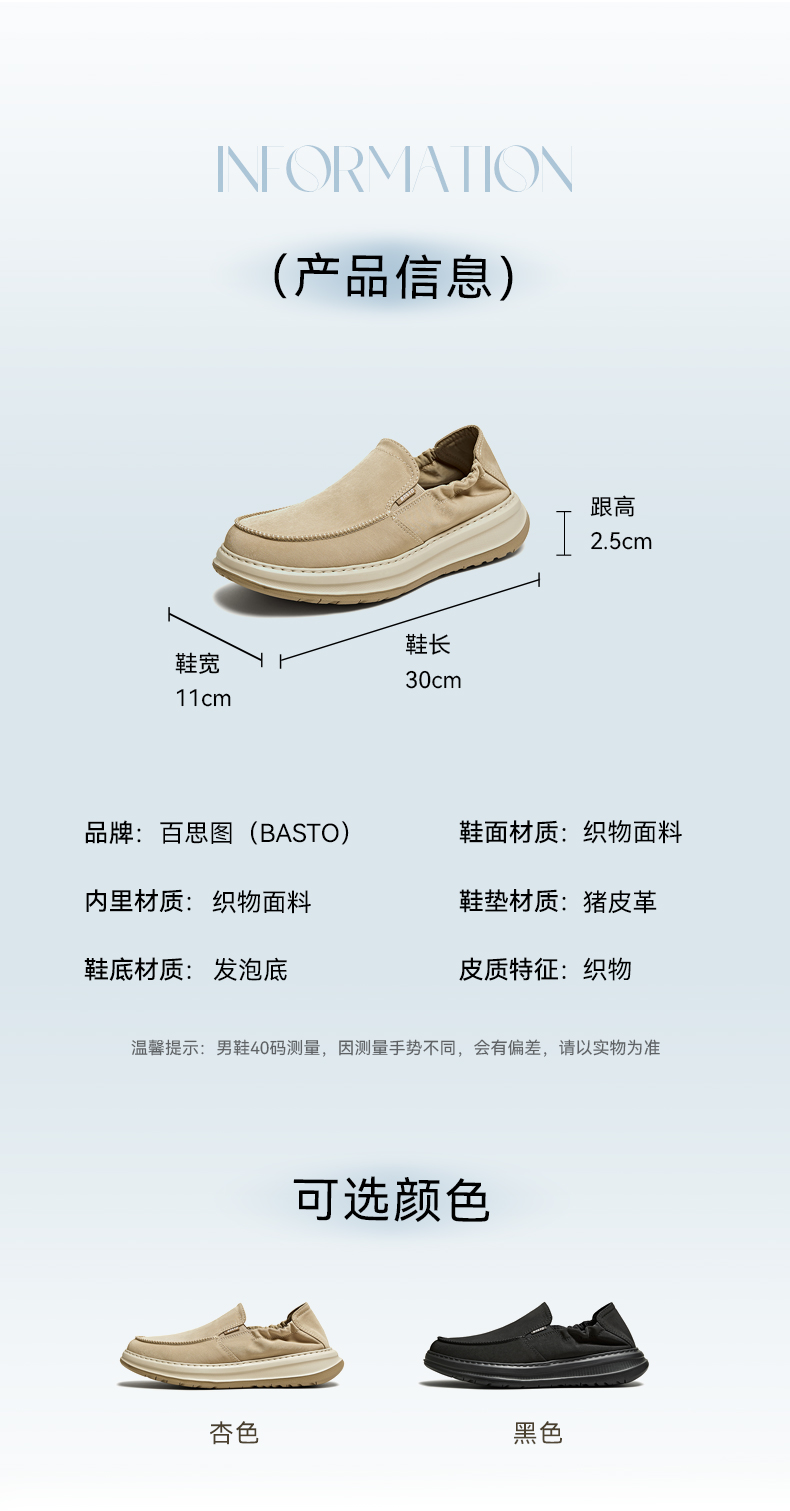| 40码鞋长参考(男):30CM | 鞋帮:低帮 | 鞋头款式:圆头 | 鞋底材质:发泡底 | 鞋面图案:纯色 |