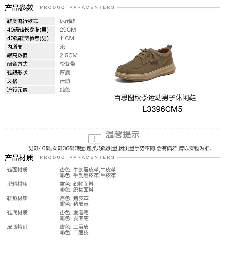 | 风格:运动 | 色系:棕色 | 跟高数值:2.5CM | 40码鞋宽参考(男):11CM | 性别:男子 |
