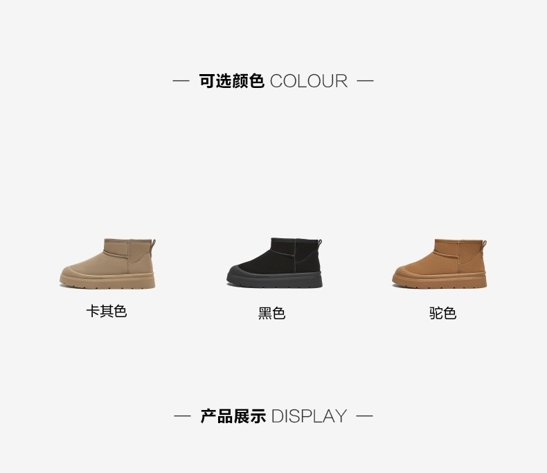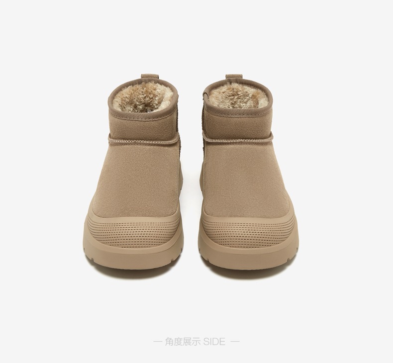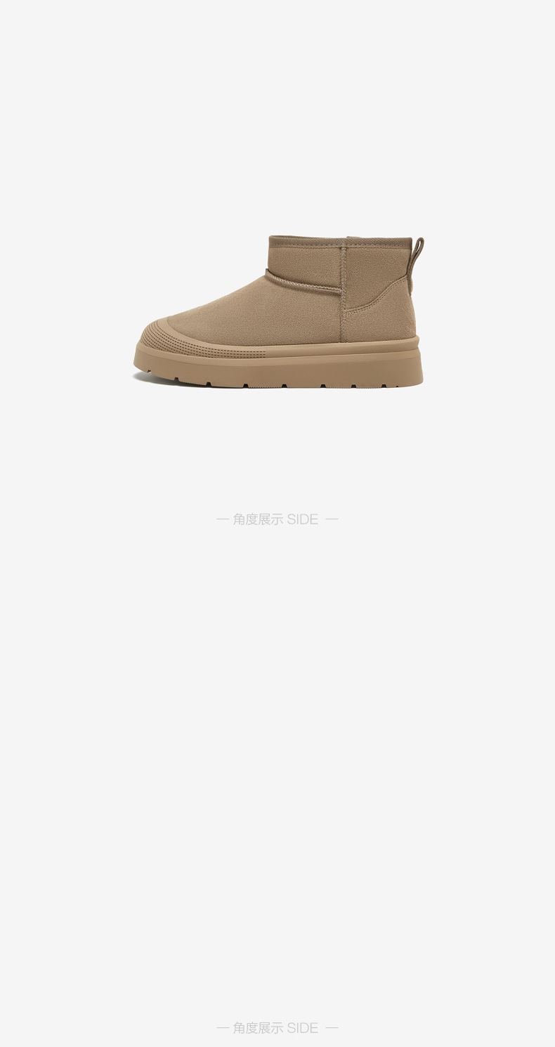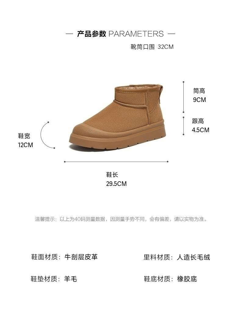 | 鞋类流行款式:雪地靴 | 鞋头款式:圆头 | 执行标准:休闲鞋 QB/T2955-2017 | 鞋面图案:纯色 | 鞋跟形状:厚底 |