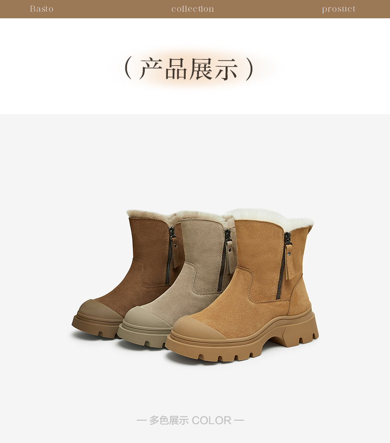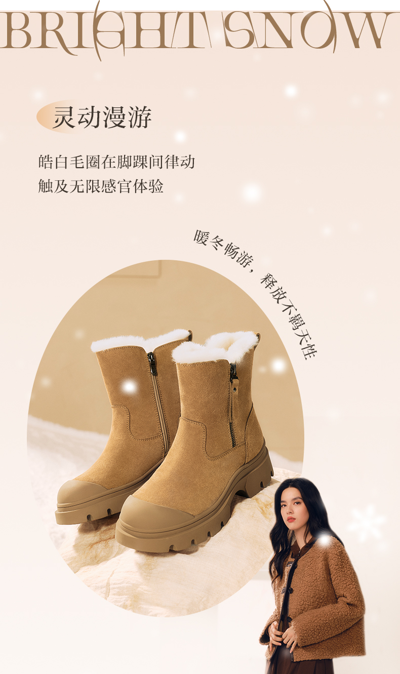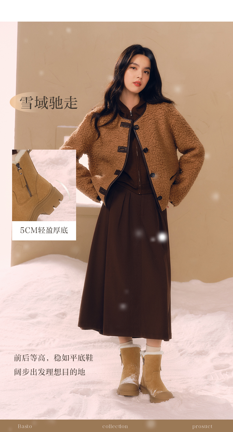 | 鞋类流行款式:雪地靴 | 鞋头款式:圆头 | 执行标准:舒适上班鞋Q/LR001-2023 | 跟高范围:中跟鞋(3-5CM) | 鞋面图案:纯色 |