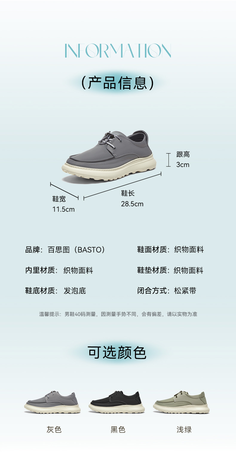 | 40码鞋长参考(男):28.5CM | 鞋帮:低帮 | 鞋头款式:圆头 | 鞋底材质:发泡底 | 鞋面图案:纯色 |