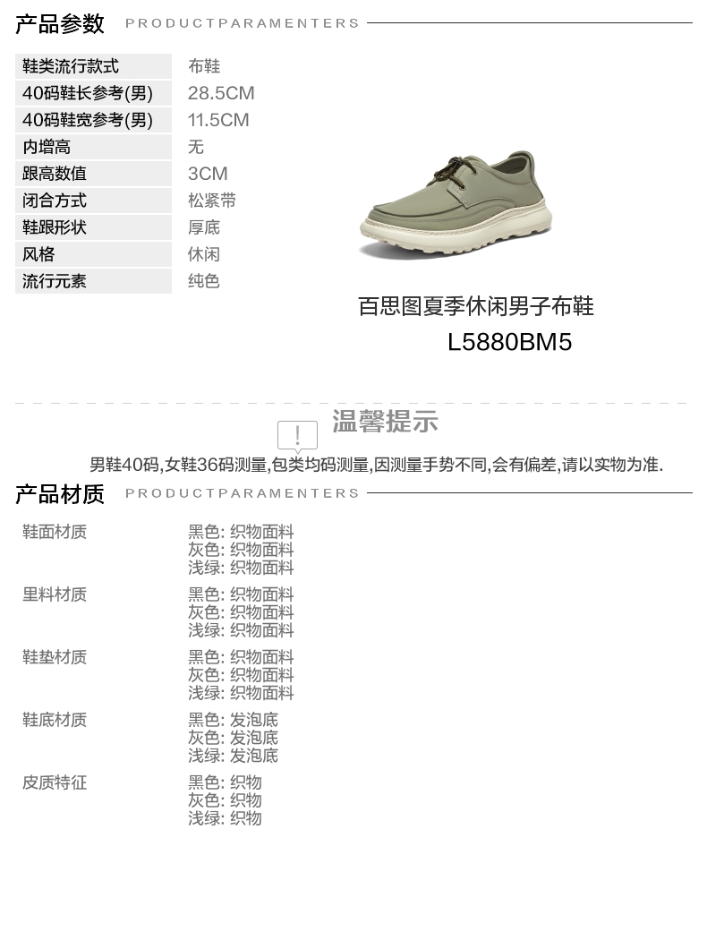 | 风格:休闲 | 色系:绿色 | 跟高数值:3CM | 40码鞋宽参考(男):11.5CM | 性别:男子 |