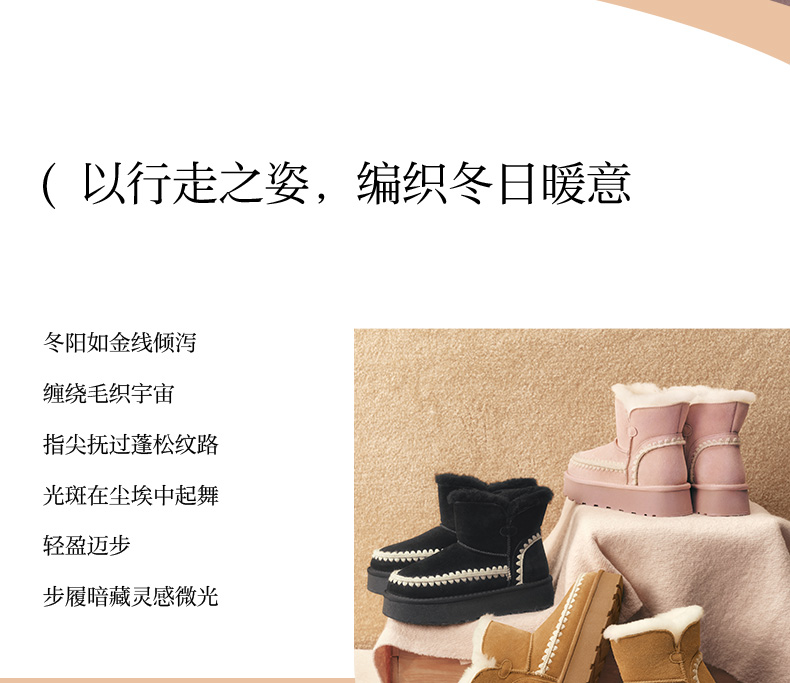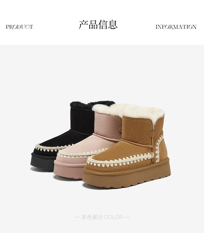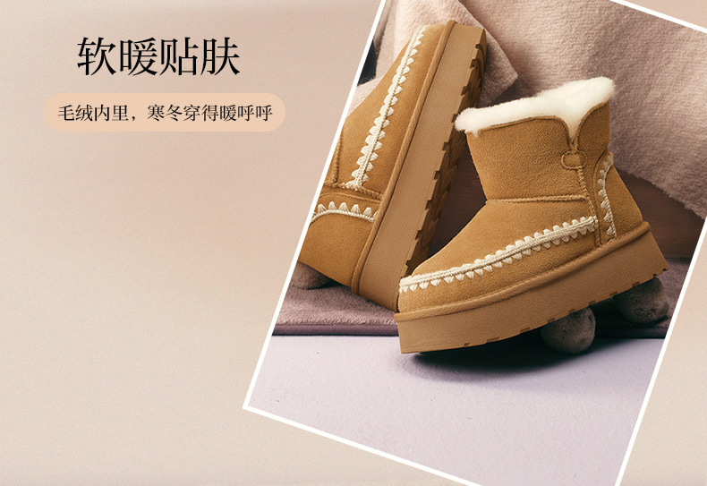 | 帮面材质:牛剖层革 | 配跟:无 | 靴筒口围:36CM | 上市时间:2025年冬季 | 鞋类流行款式:雪地靴 |