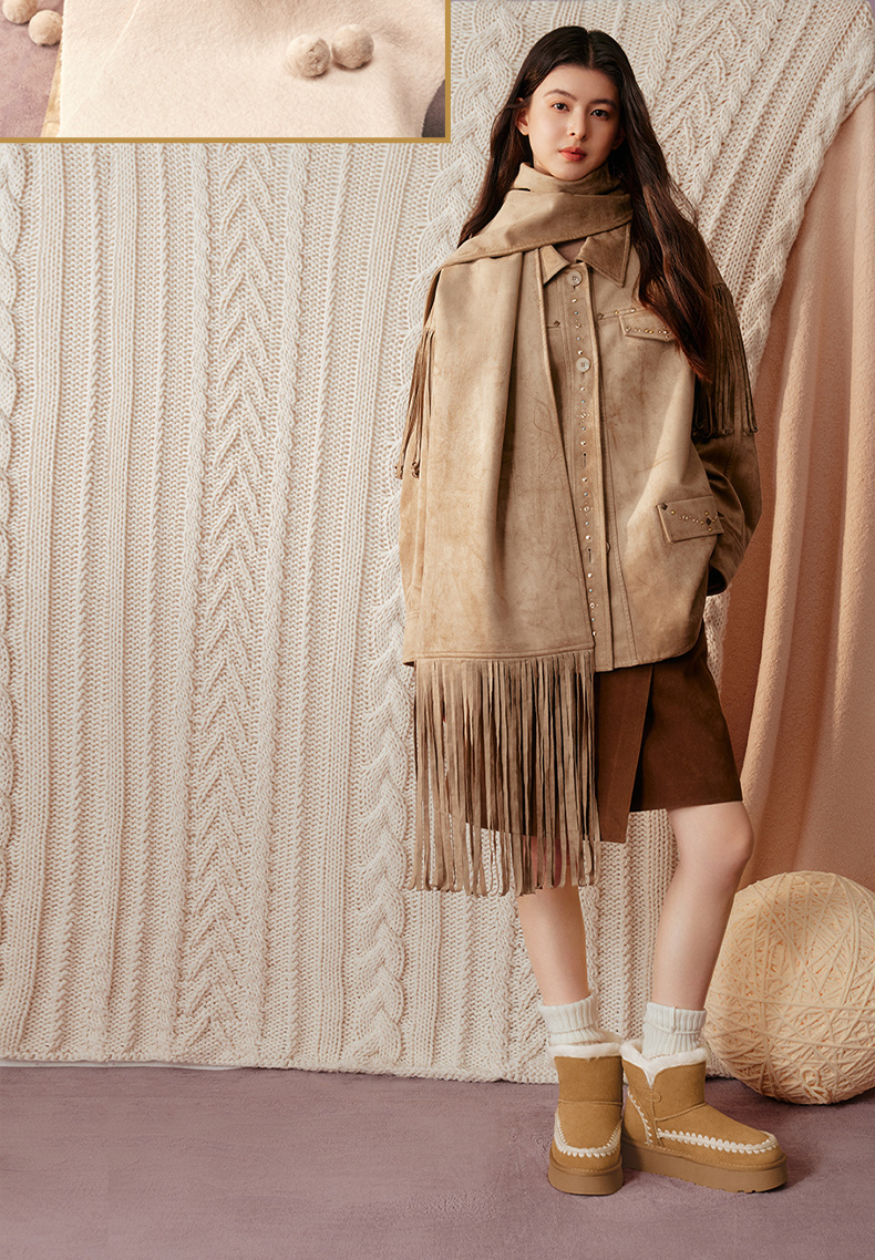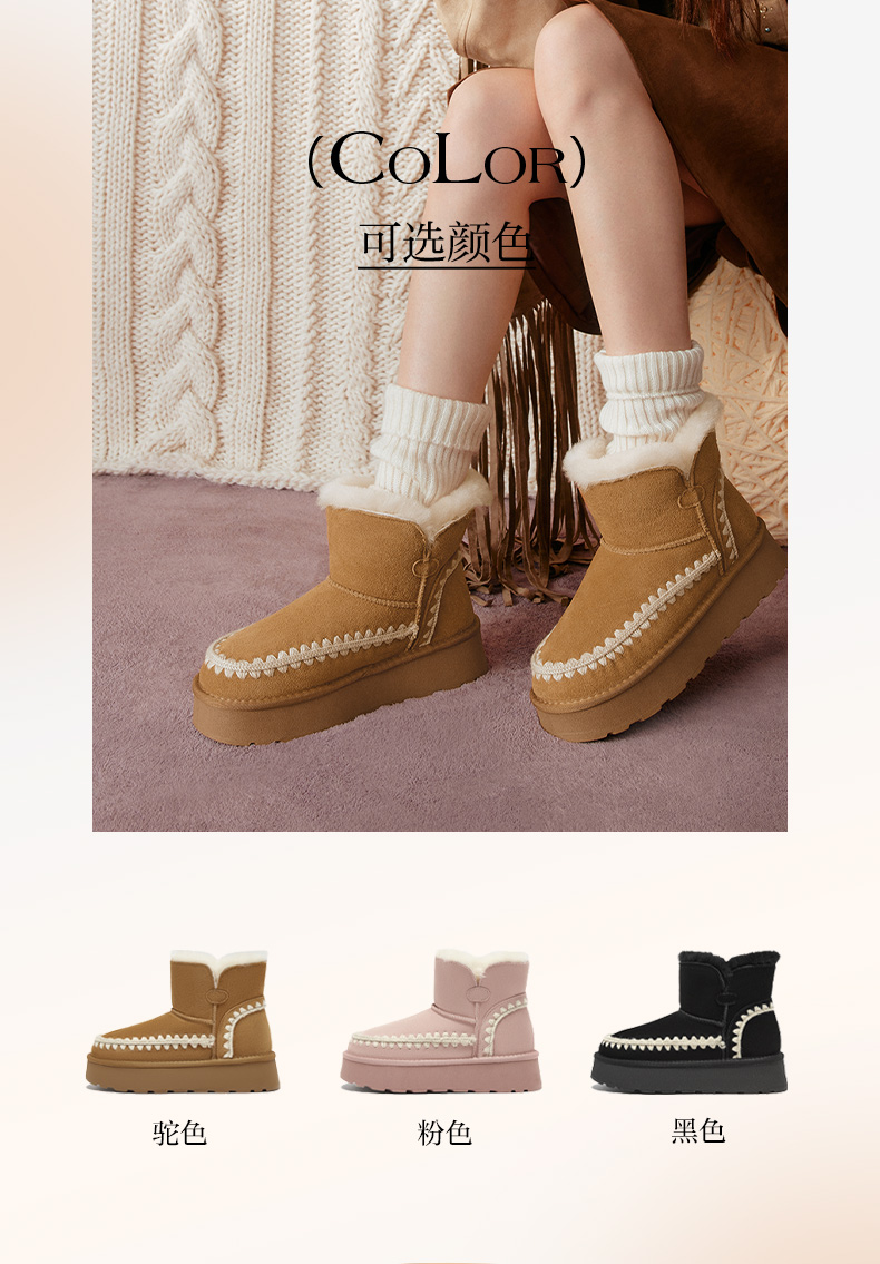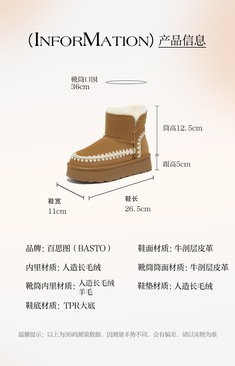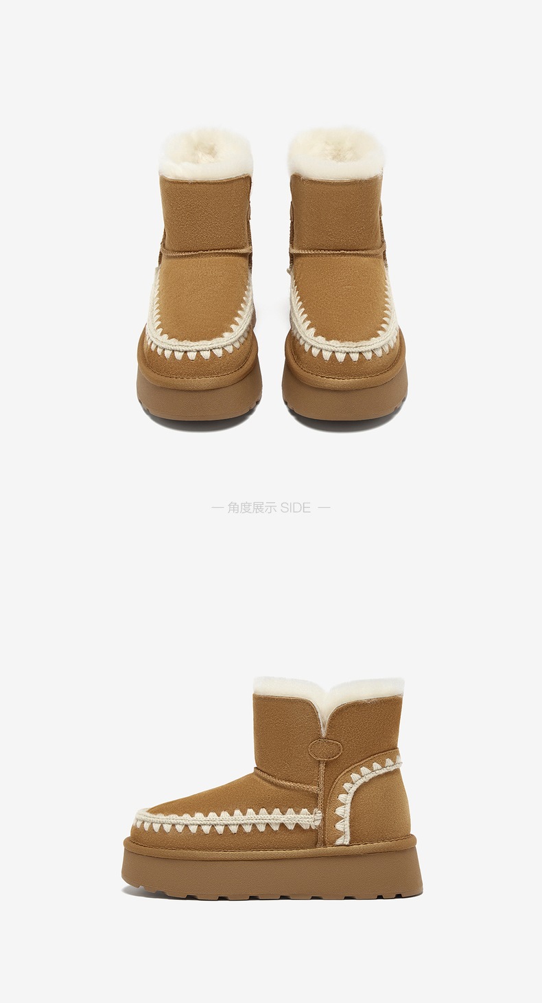 | 帮面材质:牛剖层革 | 配跟:无 | 靴筒口围:36CM | 上市时间:2025年冬季 | 鞋类流行款式:雪地靴 |