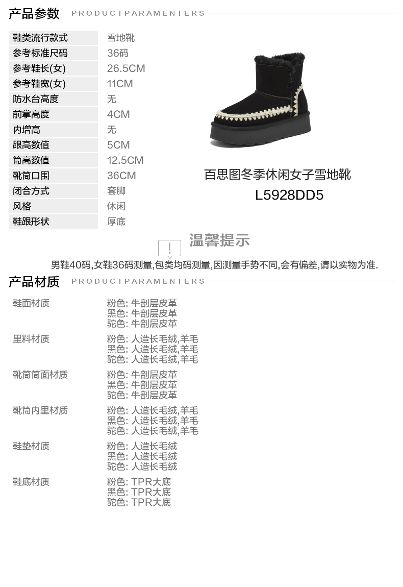 | 款式季节:冬季 | 前掌高度:4CM | 皮质特征:无 | 防水台高度:无 |