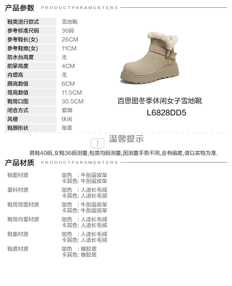 | 款式季节:冬季 | 前掌高度:4CM | 皮质特征:无 | 防水台高度:无 |
