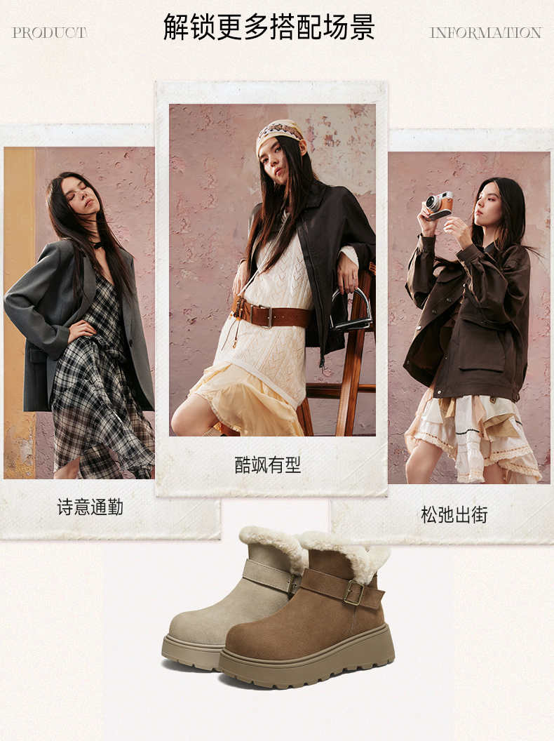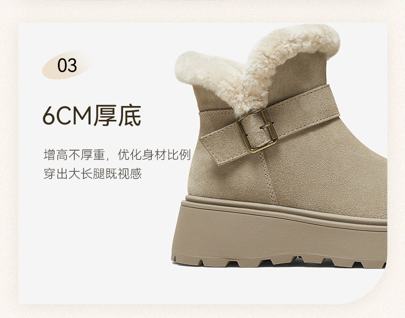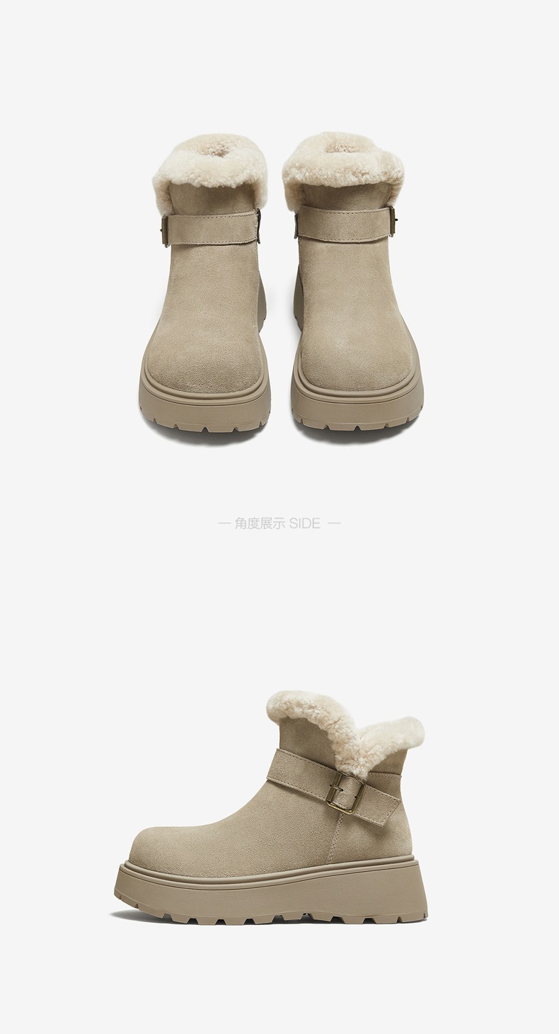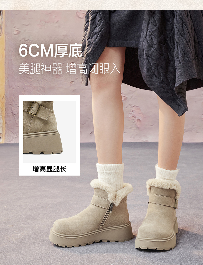 | 帮面材质:牛剖层革 | 配跟:无 | 靴筒口围:30.5CM | 上市时间:2025年冬季 | 鞋类流行款式:雪地靴 |