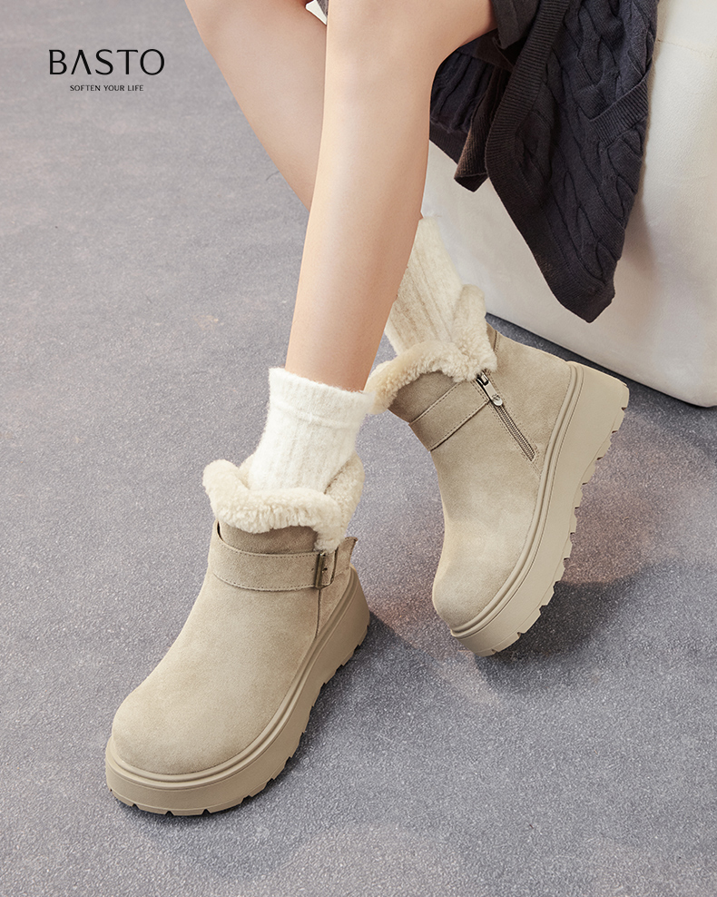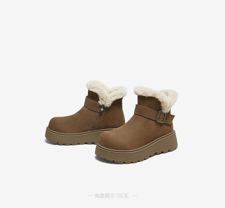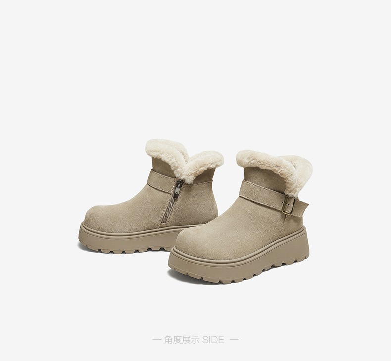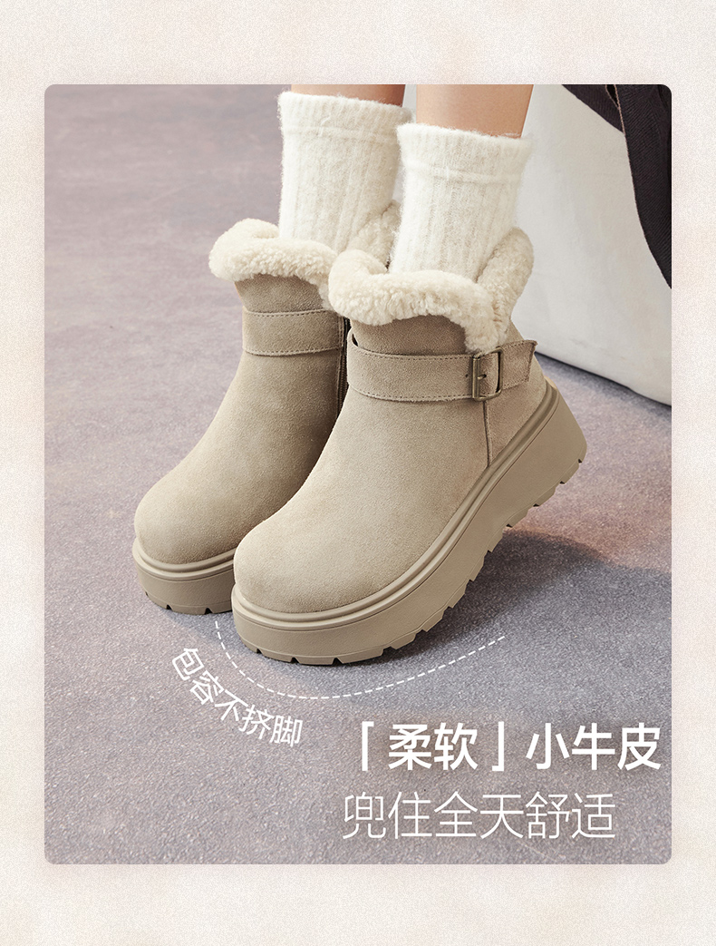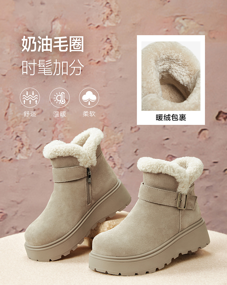 | 帮面材质:牛剖层革 | 配跟:无 | 靴筒口围:30.5CM | 上市时间:2025年冬季 | 鞋类流行款式:雪地靴 |
