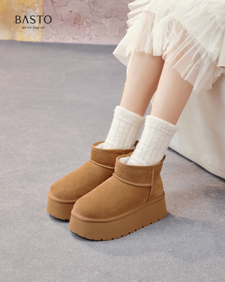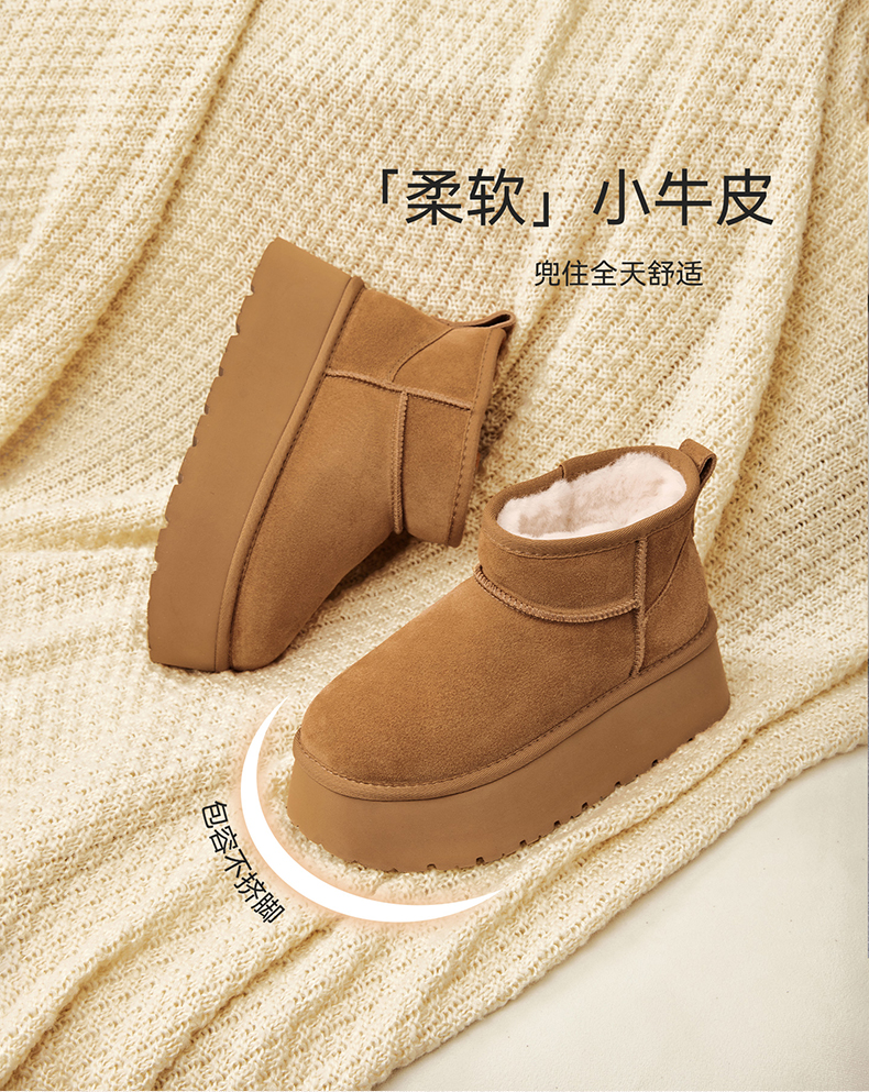 | 帮面材质:牛剖层革 | 配跟:无 | 靴筒口围:35CM | 上市时间:2025年冬季 | 鞋类流行款式:雪地靴 |