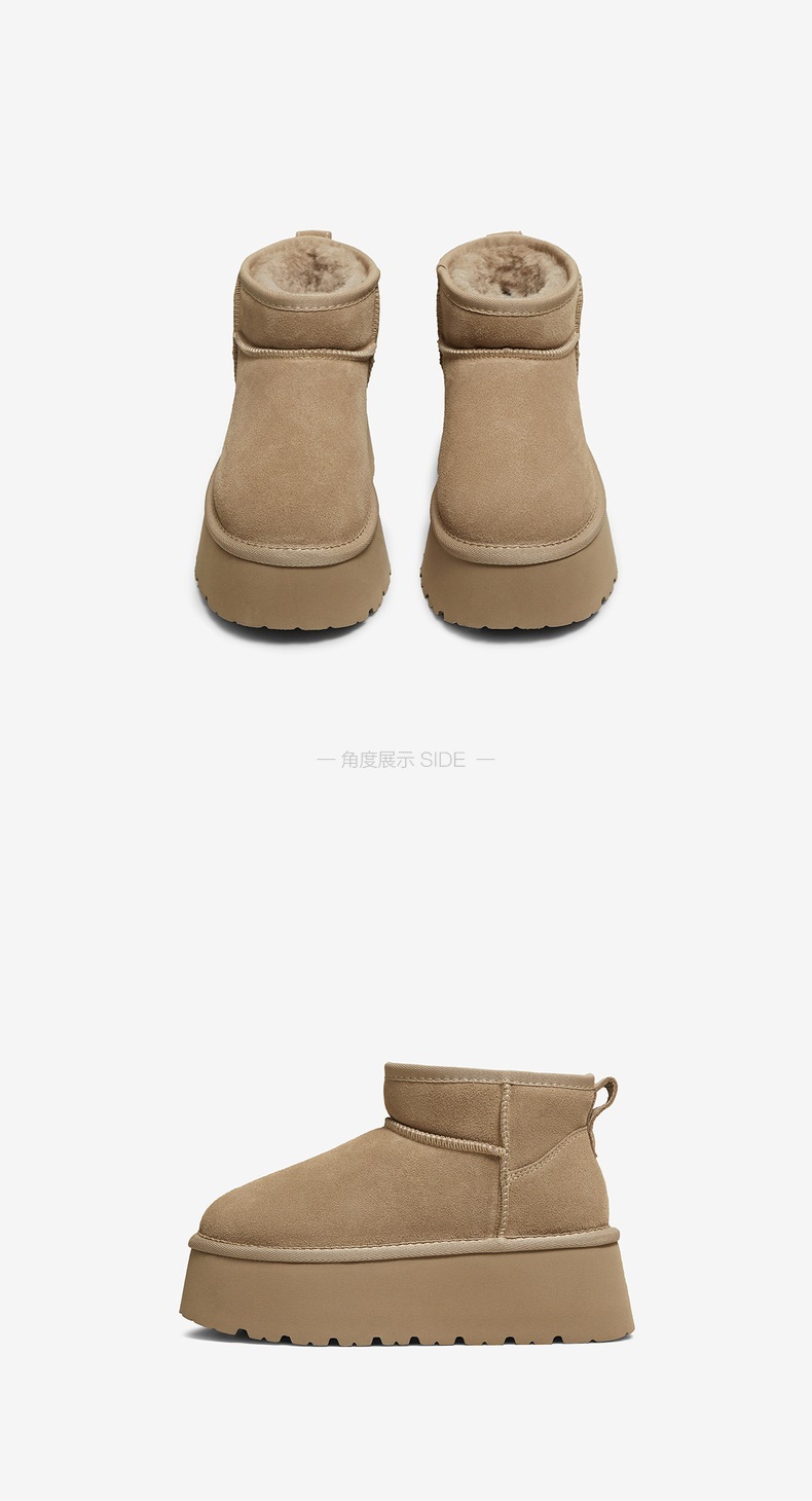| 帮面材质:牛剖层革 | 配跟:无 | 靴筒口围:35CM | 上市时间:2025年冬季 | 鞋类流行款式:雪地靴 |