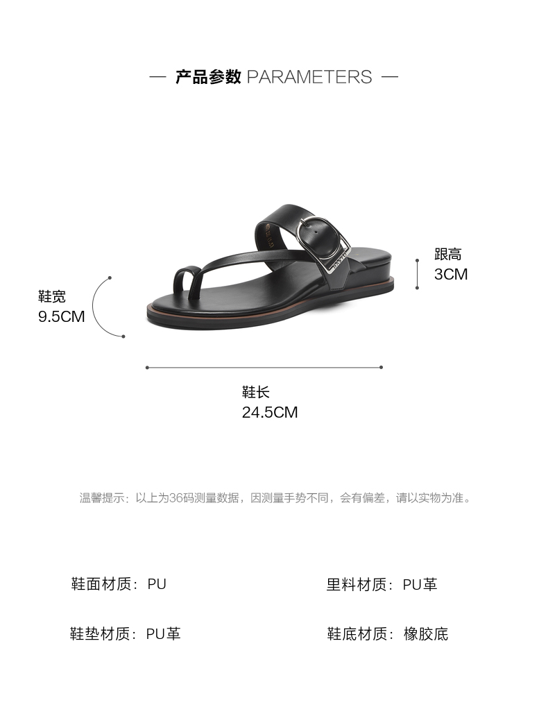 | 渠道划分:电商专销 | 前掌高度:1CM | 皮质特征:PU | 防水台高度:无 | 销售季:2024年夏季 |