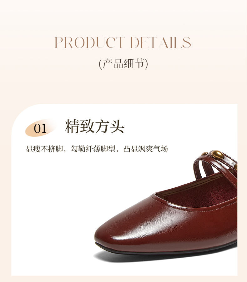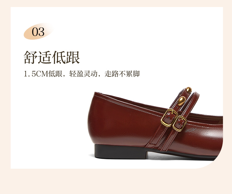 | 上市时间:2025年春季 | 生产/经销/进口厂家:丽荣鞋业(深圳)有限公司 | 鞋类流行款式:玛丽珍鞋 | 鞋头款式:方头 | 执行标准:皮鞋 QB/T1002-2015 |