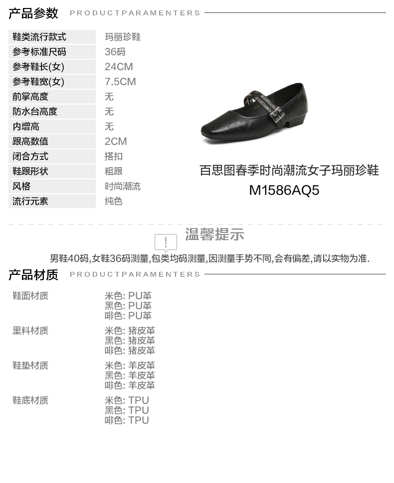 | 上市时间:2025年春季 | 生产/经销/进口厂家:丽荣鞋业(深圳)有限公司 | 鞋类流行款式:玛丽珍鞋 | 鞋头款式:方头 | 执行标准:皮鞋 QB/T1002-2015 |