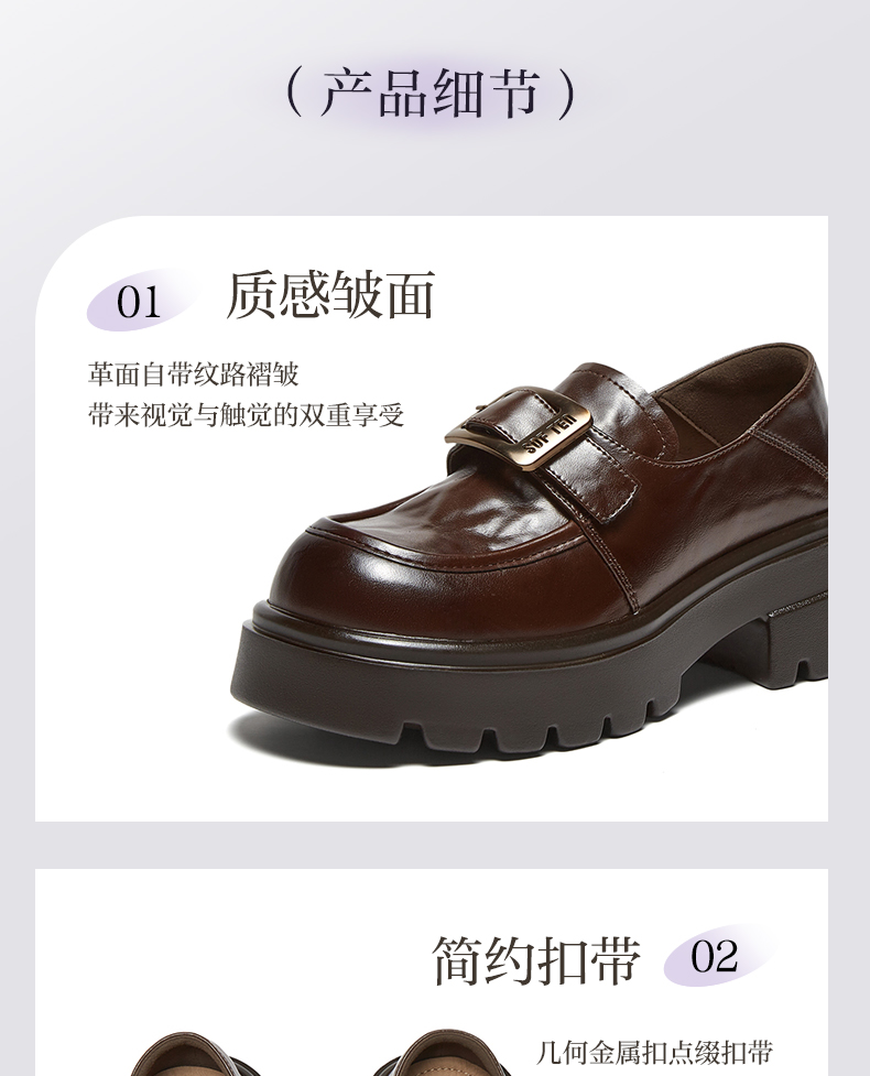 | 制鞋工艺:胶贴皮鞋 | 款式季节:春季 | 鞋垫材质:羊皮革 | 渠道划分:线下同步 | 前掌高度:3.5CM |