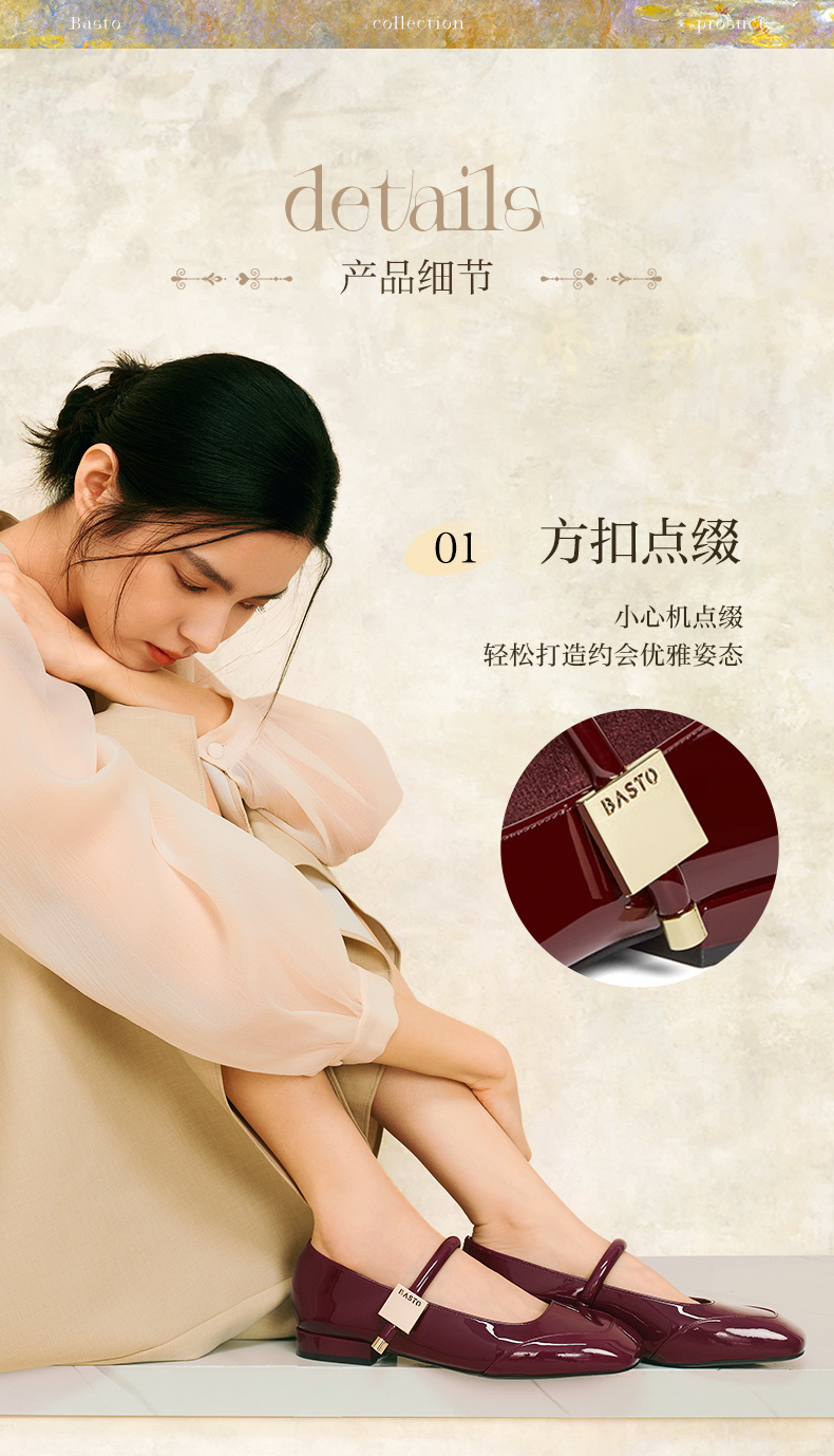 | 上市时间:2025年春季 | 生产/经销/进口厂家:丽荣鞋业(深圳)有限公司 | 鞋类流行款式:玛丽珍鞋 | 鞋头款式:方头 | 执行标准:皮鞋 QB/T1002-2015 |