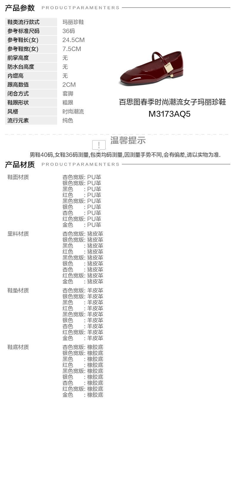 | 上市时间:2025年春季 | 生产/经销/进口厂家:丽荣鞋业(深圳)有限公司 | 鞋类流行款式:玛丽珍鞋 | 鞋头款式:方头 | 执行标准:皮鞋 QB/T1002-2015 |