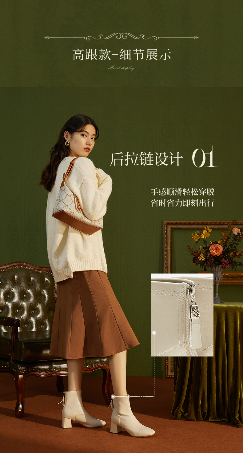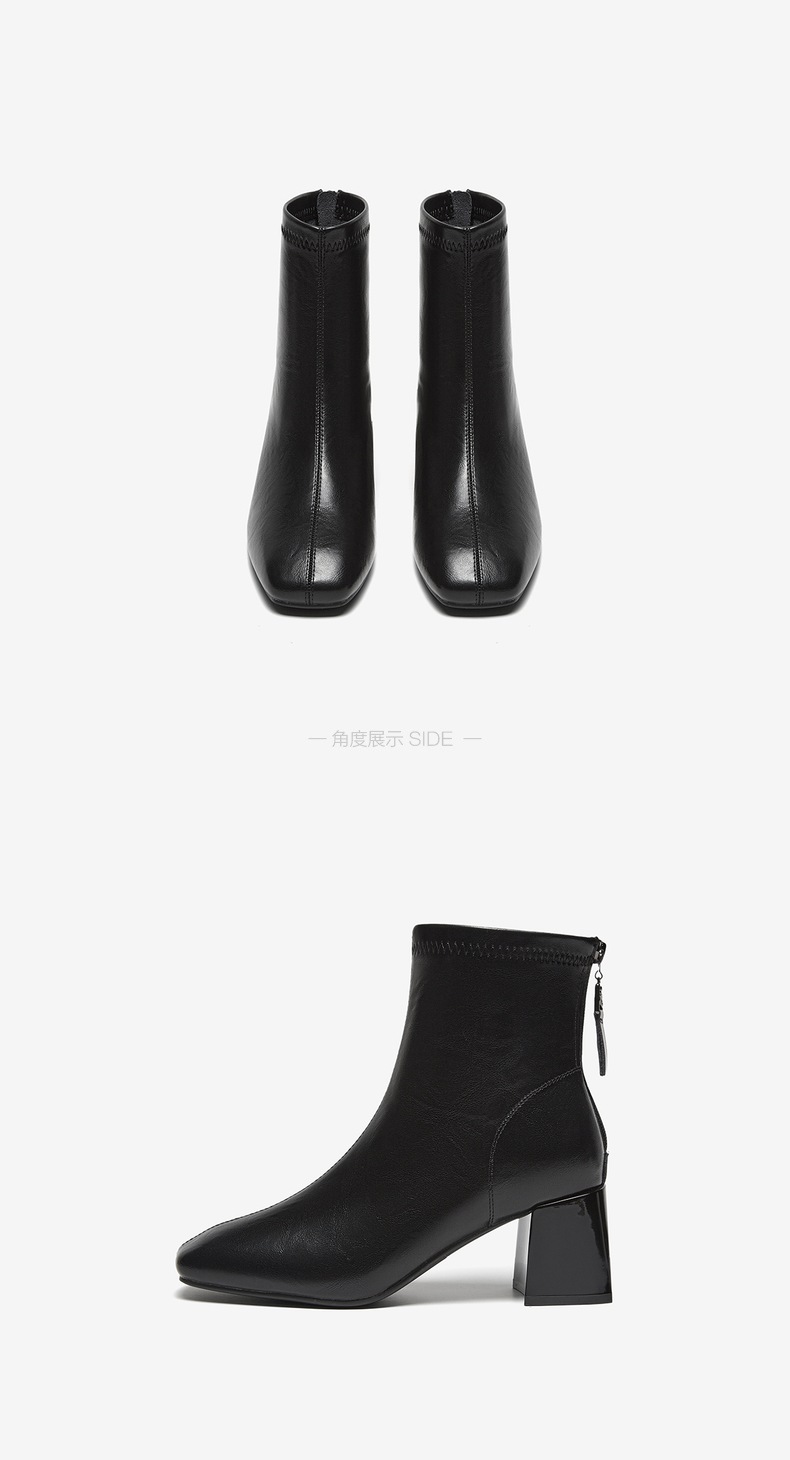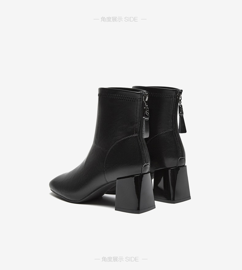 | 鞋底材质:橡胶底 | 靴筒内里材质:织物面料 | 内增高:无 | 鞋面材质:PU革 | 闭合方式:后拉链 |