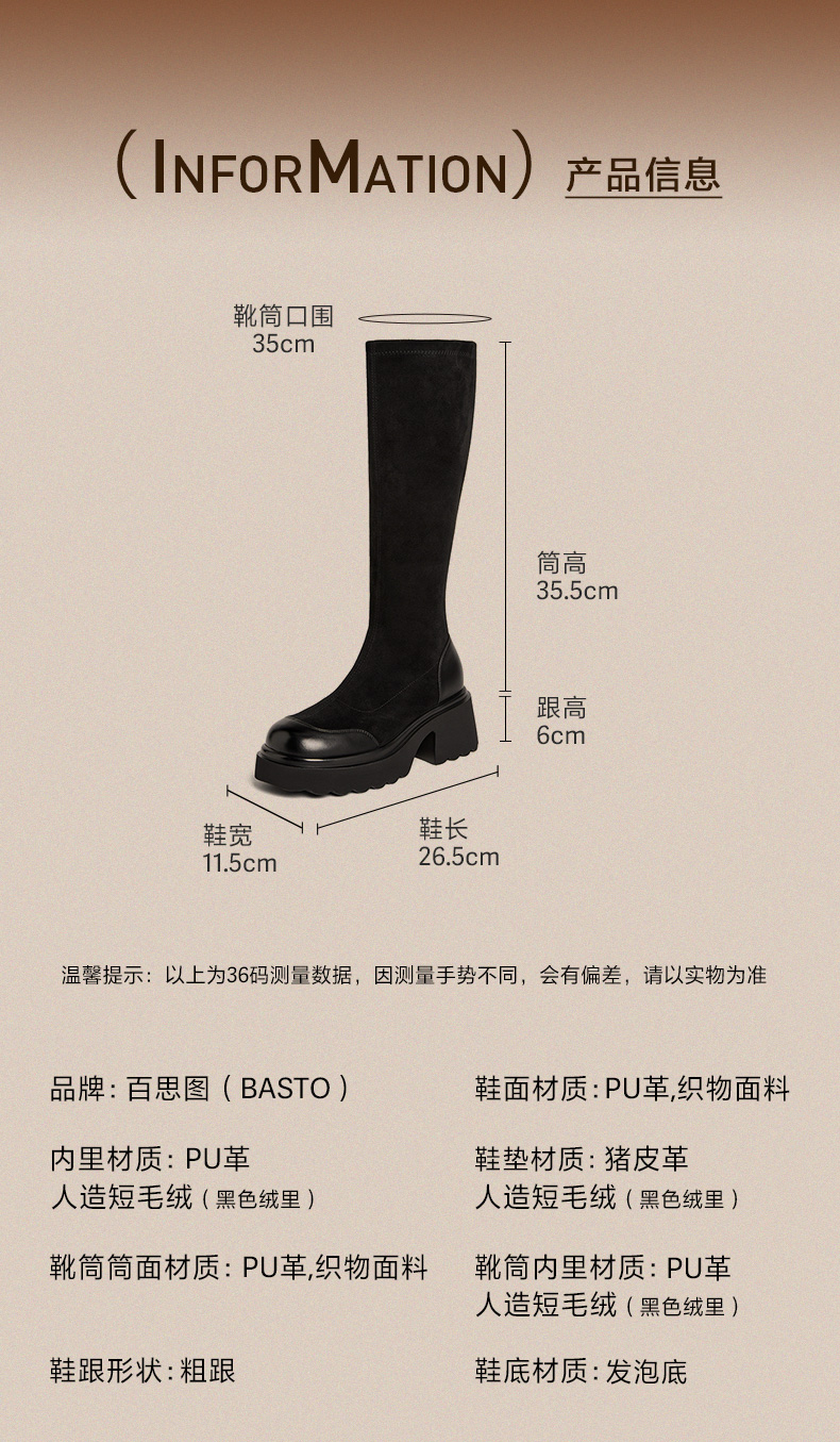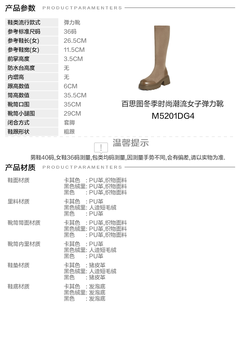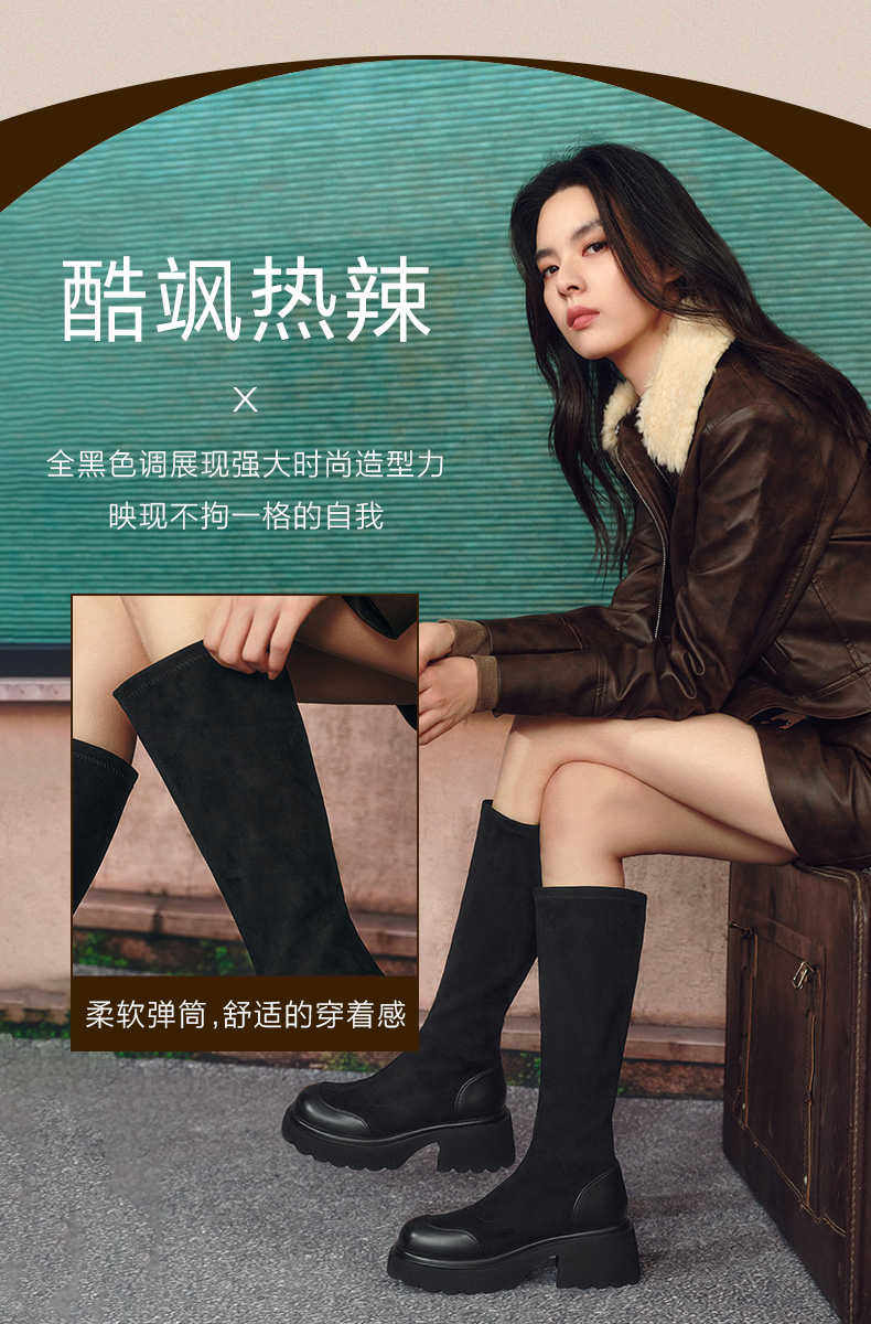 | 配跟:无 | 靴筒口围:35CM | 上市时间:2024年冬季 | 鞋类流行款式:弹力靴 | 鞋头款式:圆头 |