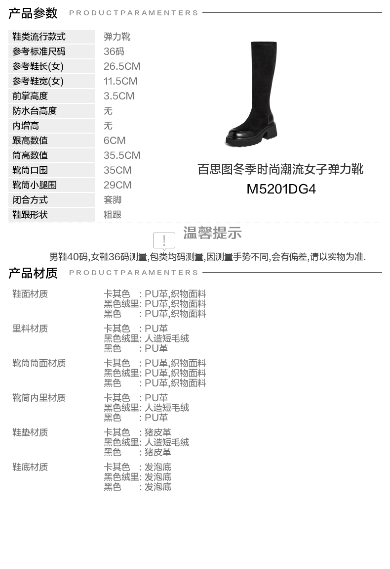 | 风格:时尚潮流 | 色系:黑色 | 跟高数值:6CM | 性别:女子 | 筒高数值:35.5CM |