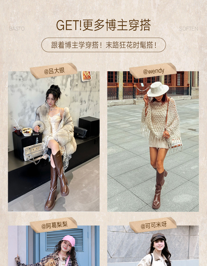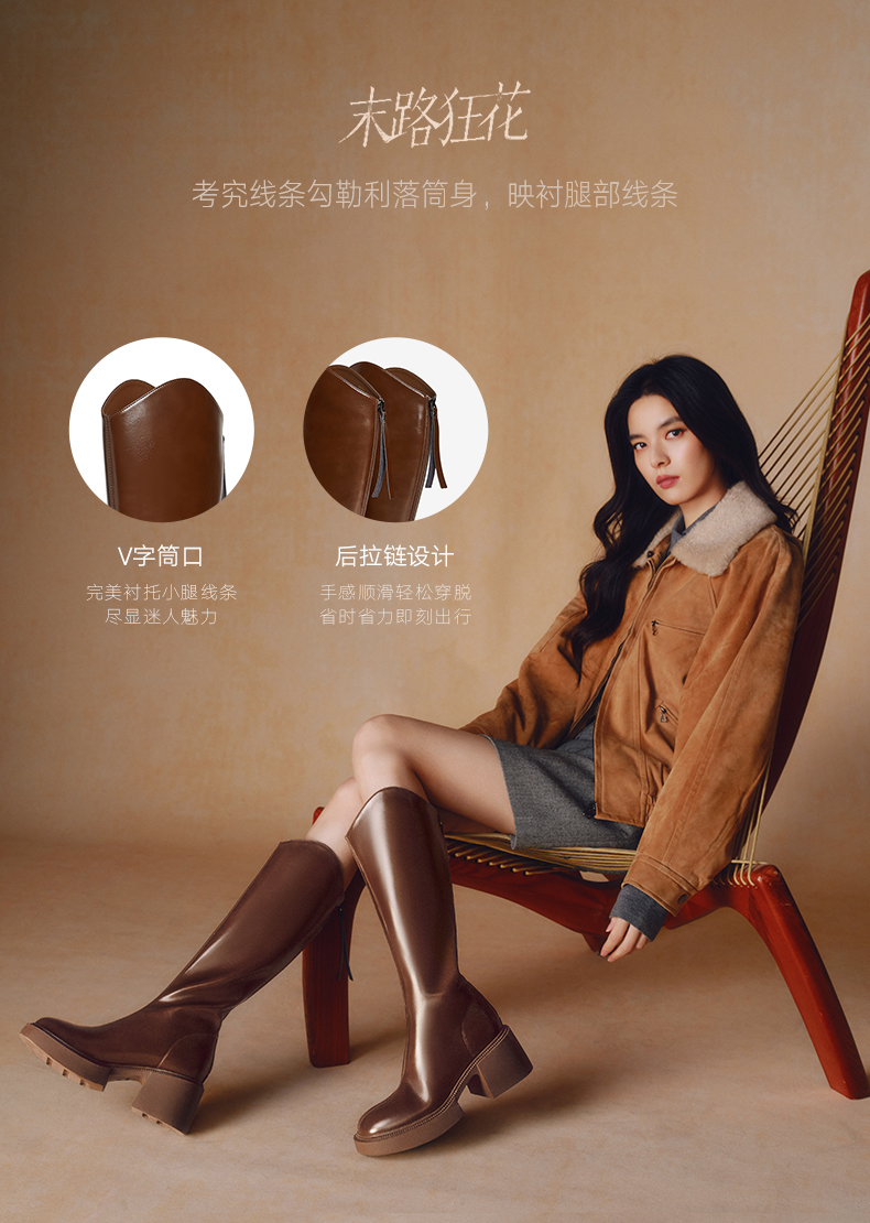| 风格:时尚潮流 | 色系:棕色 | 跟高数值:7CM | 性别:女子 | 筒高数值:37CM |