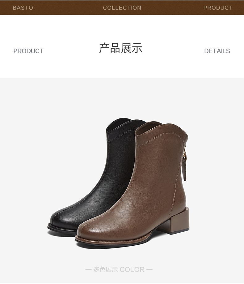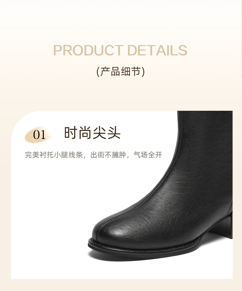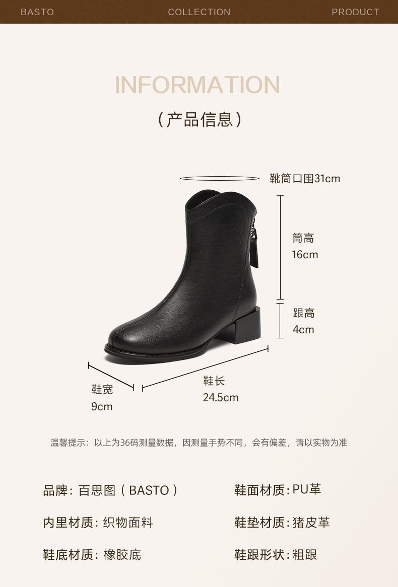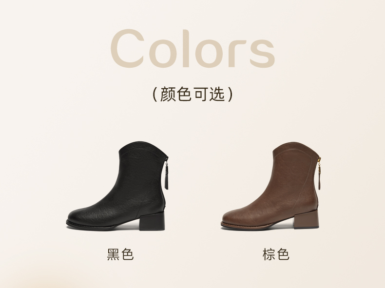 | 鞋类流行款式:时装靴 | 鞋头款式:圆头 | 执行标准:皮鞋 QB/T1002-2015 | 跟高范围:中跟鞋(3-5CM) | 鞋面图案:纯色 |