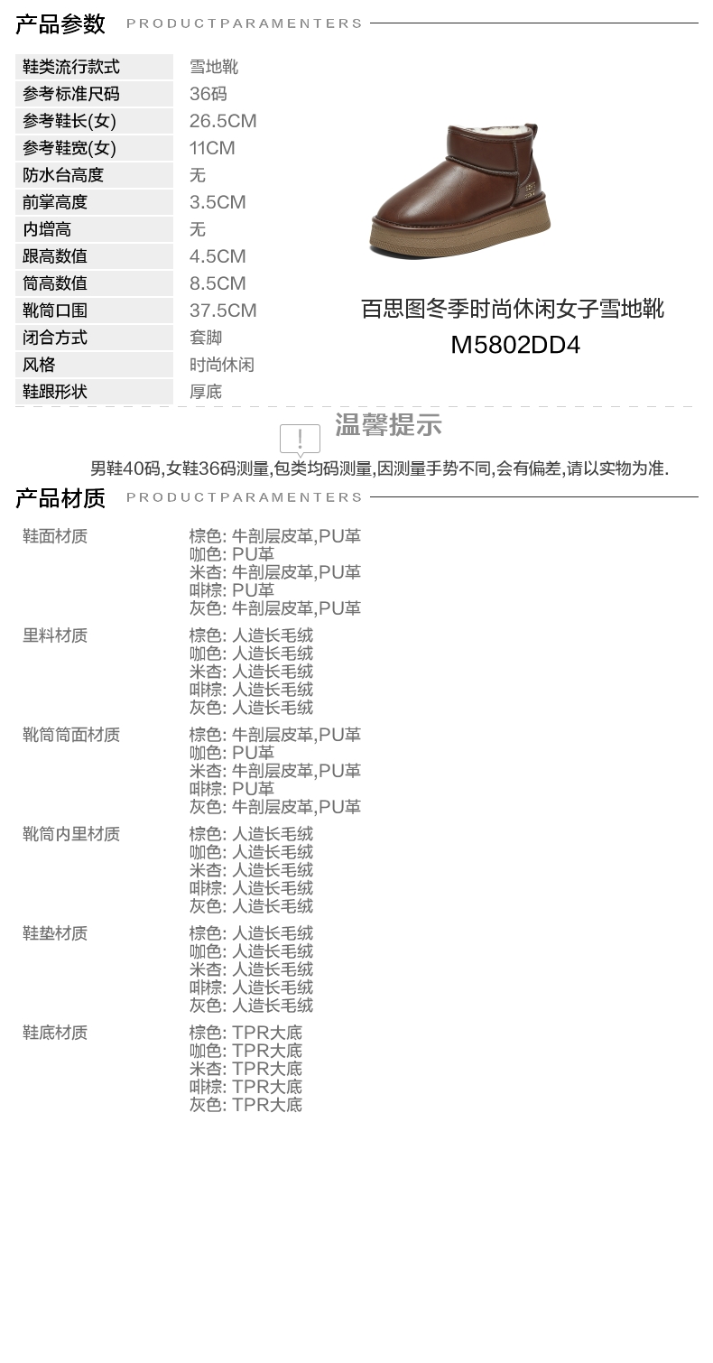 | 款式季节:冬季 | 前掌高度:3.5CM | 皮质特征:无 | 防水台高度:无 |