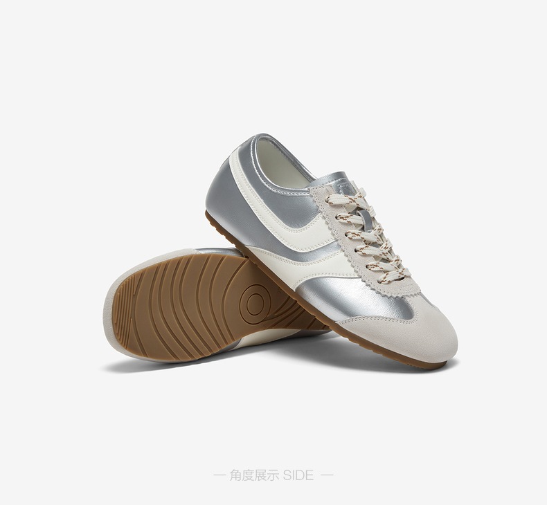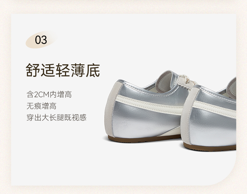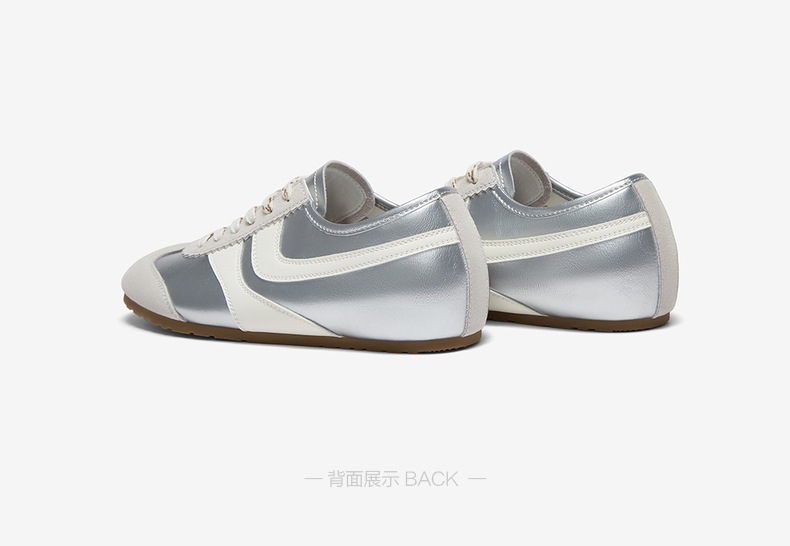 | 色系:银色 | 跟高数值:0.5CM | 性别:女子 | 里料材质:PU革 | 制鞋工艺:胶贴皮鞋 |