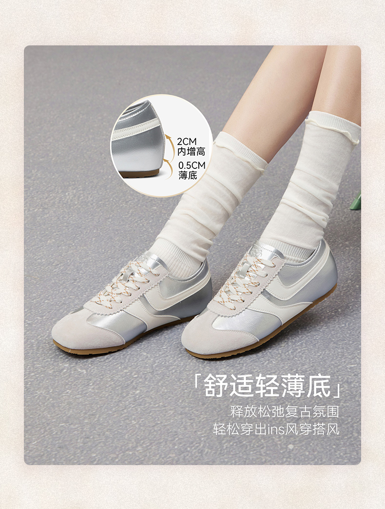 | 鞋帮:低帮 | 鞋底材质:橡胶底 | 内增高:2CM | 鞋面材质:PU革猪剖层皮革 | 闭合方式:系带 |