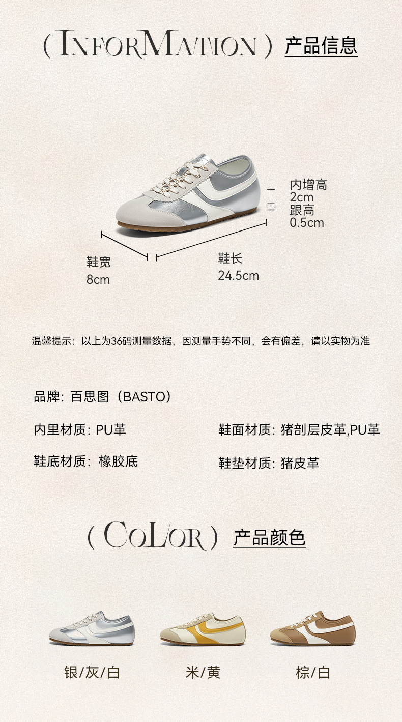 | 鞋帮:低帮 | 鞋底材质:橡胶底 | 内增高:2CM | 鞋面材质:猪剖层皮革PU革 | 闭合方式:系带 |