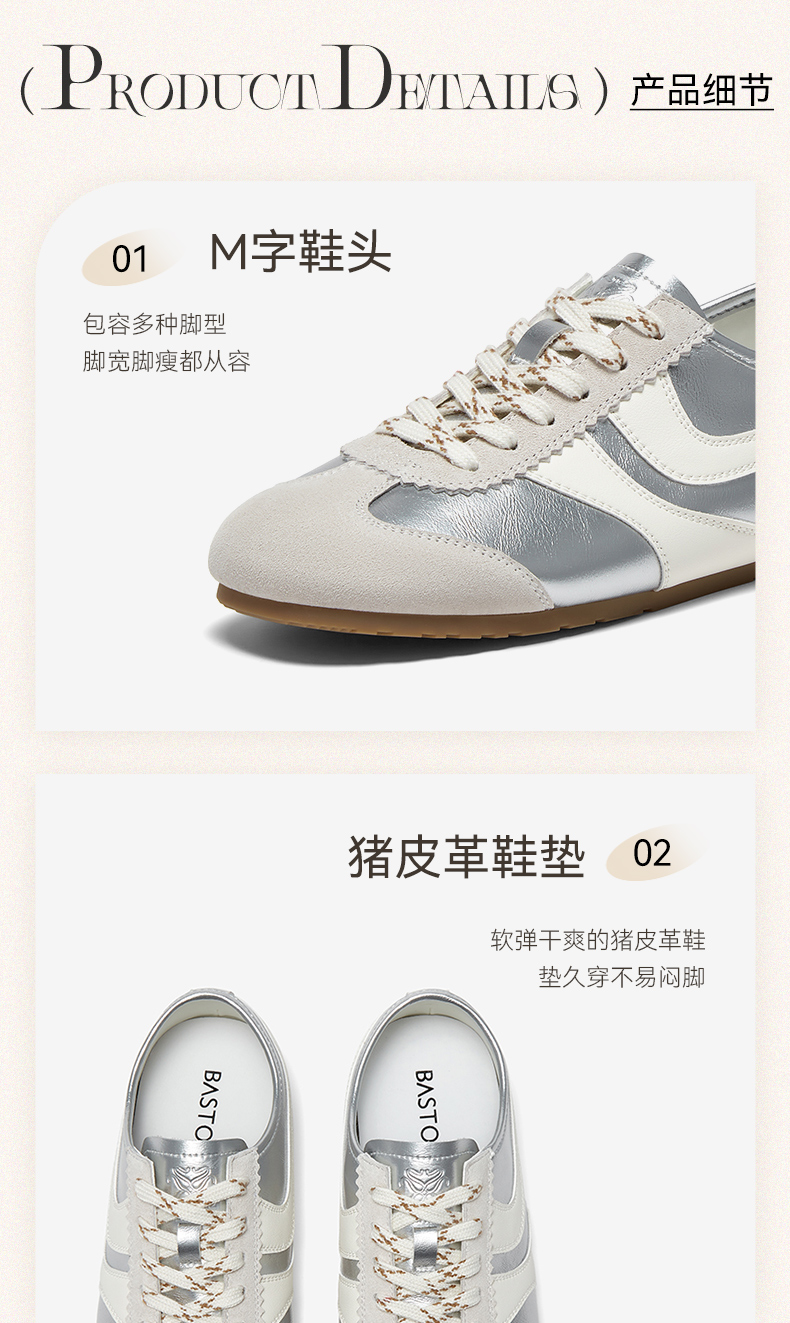 BASTO(百思图),品牌拥有17年历史,秉承优雅、甜美、清新的设计理念,主张“好嫁风”的产品风格,将甜美俏丽的少女情怀融合优雅气质的时尚品味,塑造出唯美优雅、受欢迎的女鞋款式。主打以女性温柔与亲和力为特色的流行时尚产品,糅合雅致又富有亲和力的裸粉色调,淑媛端庄、清新甜美。目前品牌已开设线下门店达1400多家。