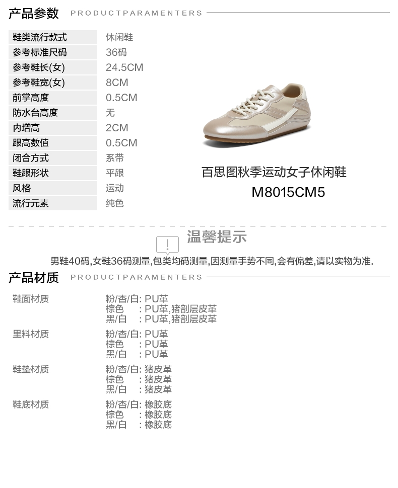 | 鞋帮:低帮 | 鞋底材质:橡胶底 | 内增高:2CM | 鞋面材质:PU革 | 闭合方式:系带 |