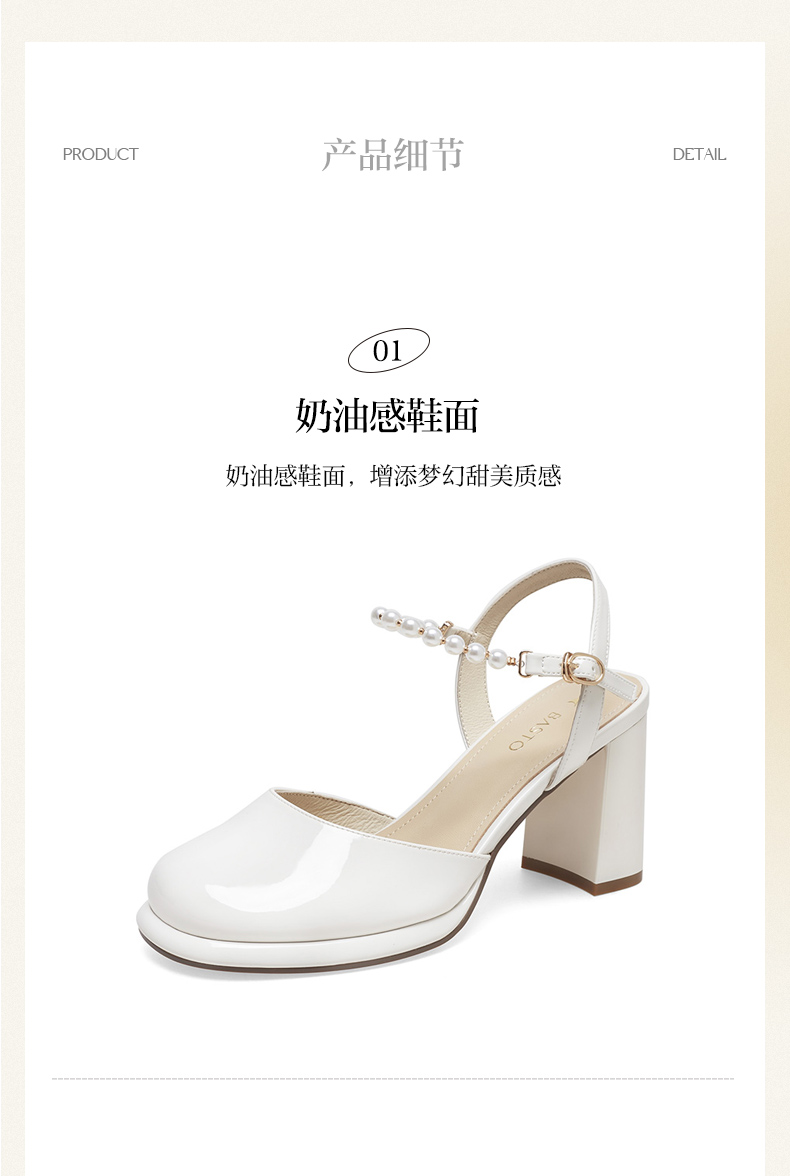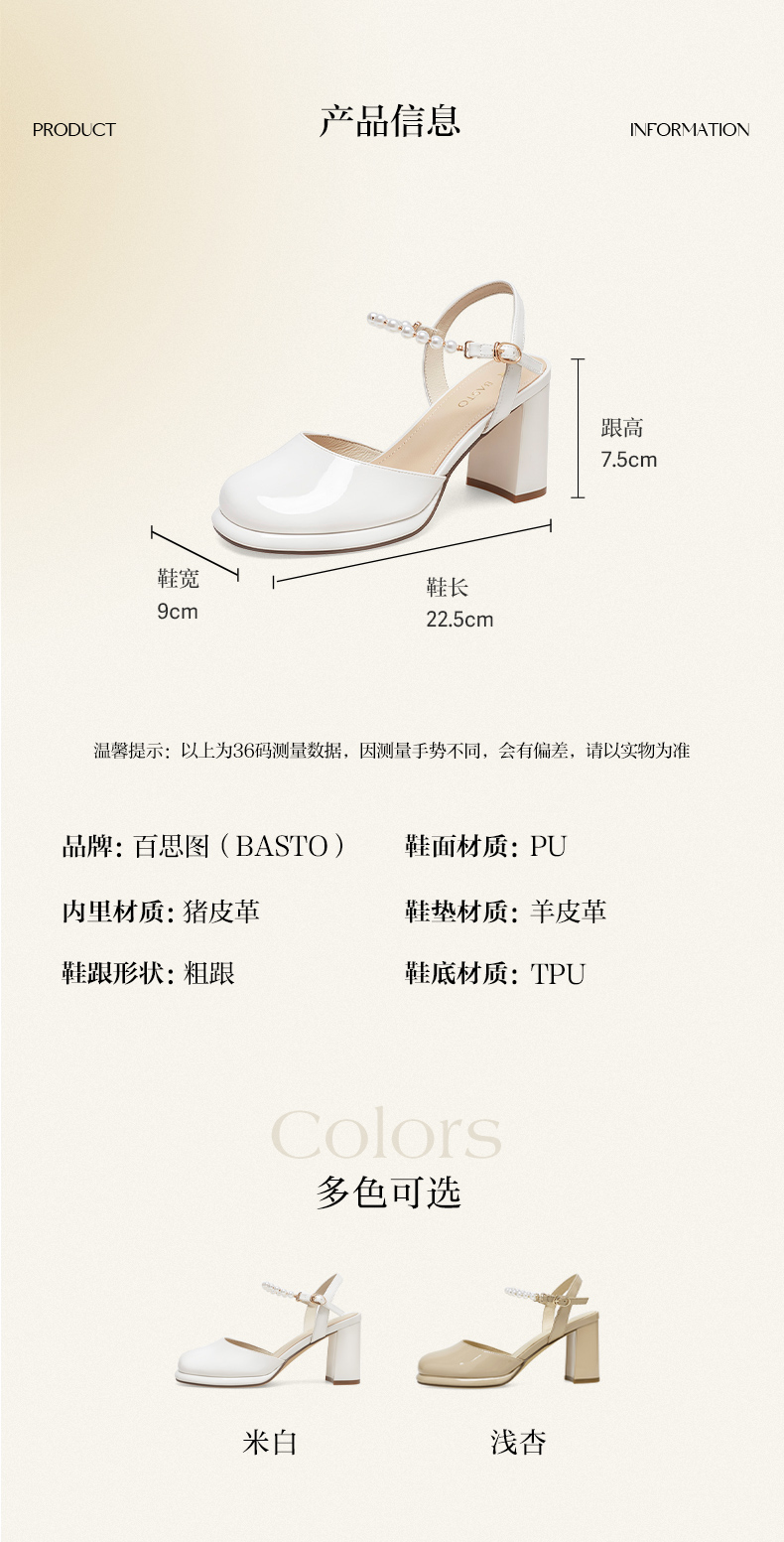 | 执行标准: | 跟高范围:高跟鞋(6-8CM) | 鞋面图案:纯色 | 鞋跟形状:粗跟 | 流行元素:珍珠 |